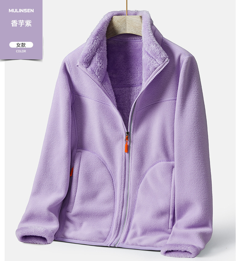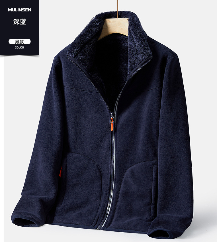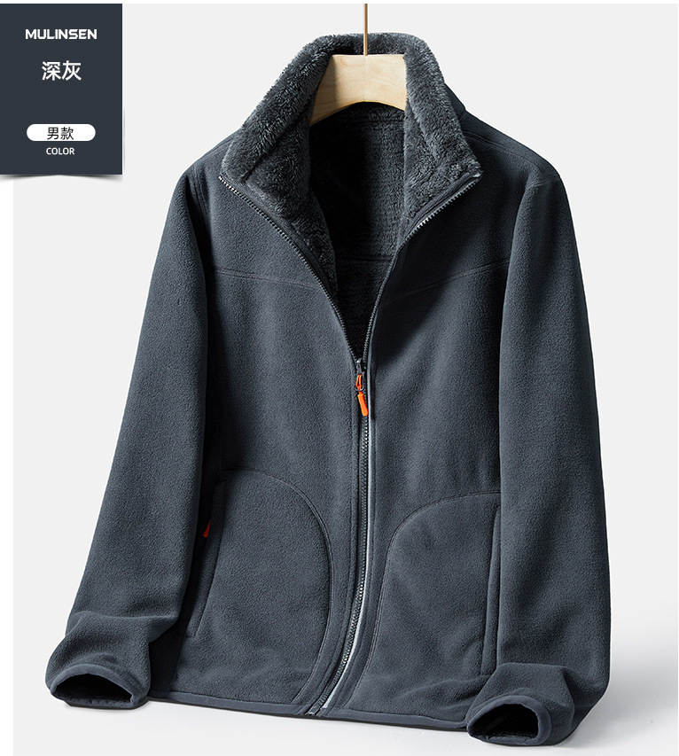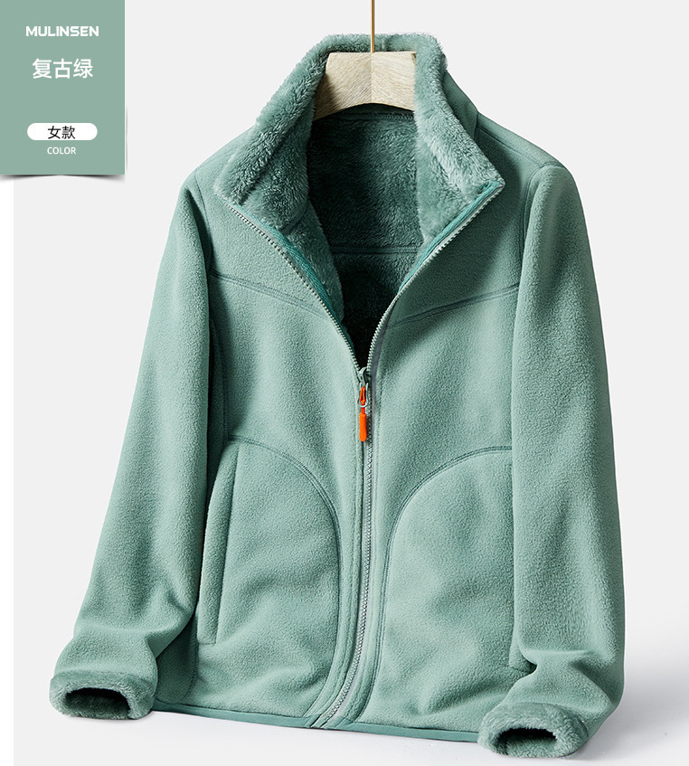 Двусторонняя флисовая куртка в уличном стиле для женщин, утолщенная флисовая толстовка на осень и зиму, теплый кардиган, куртка с воротником-стойкой для мужчин