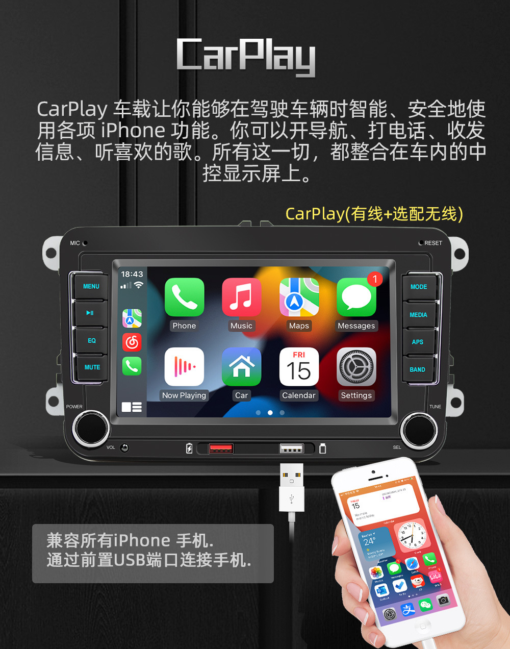 ♦支持苹果CarPlay/安卓Auto,你可以开导航、打电话、收发信息、听喜欢的歌。这些功能,都整合在车内的中控显示屏上。
