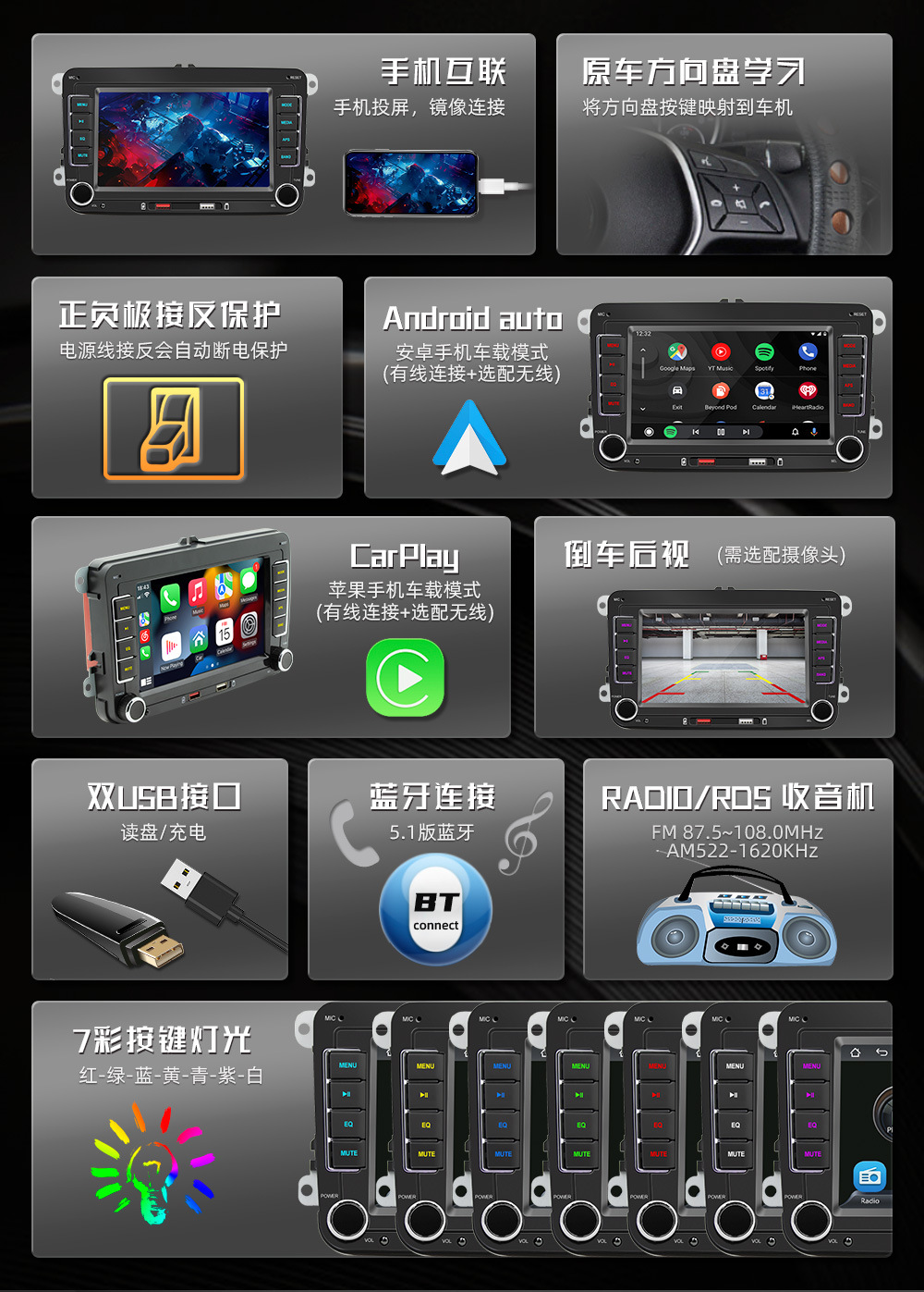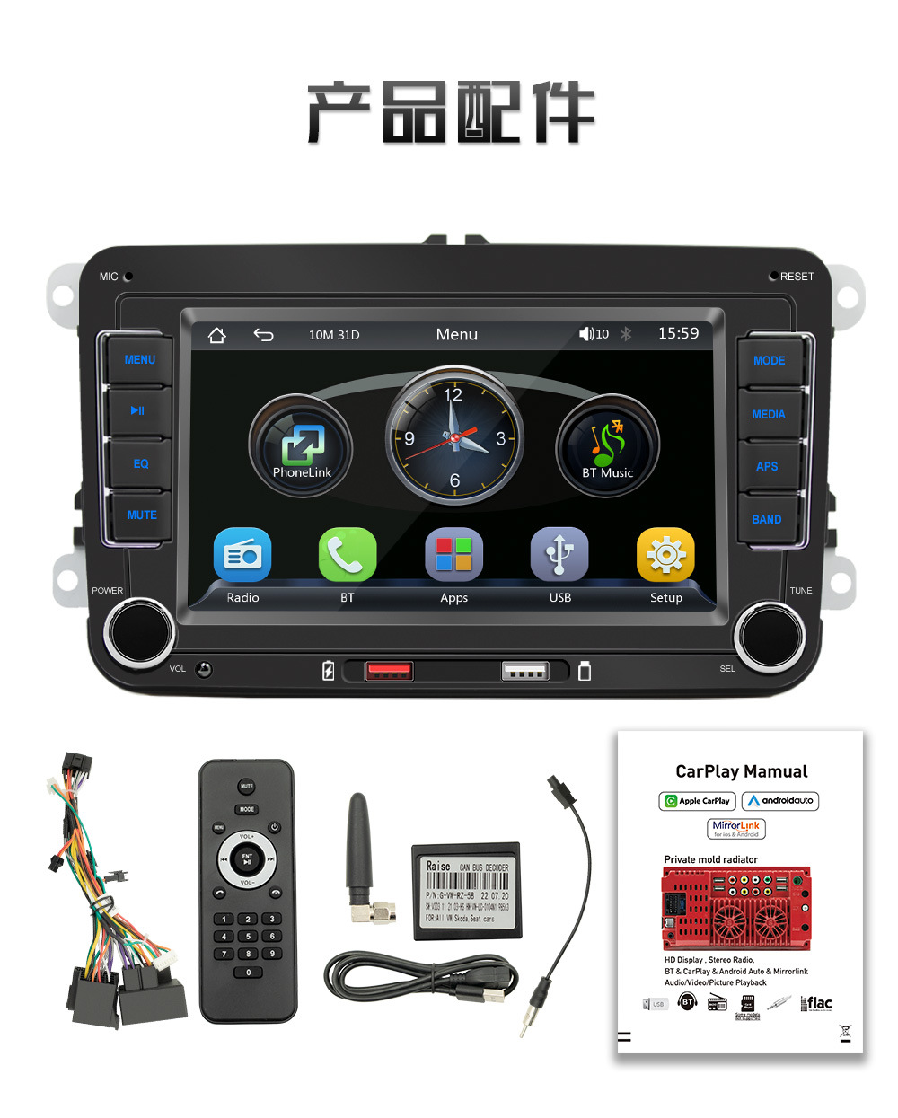 Автомобильная навигационная система Guardian Dragon 7inch CarPlay подходит для Volkswagen 7inch с большим экраном высокой четкости и Bluetooth, автомобильный MP5-плеер.