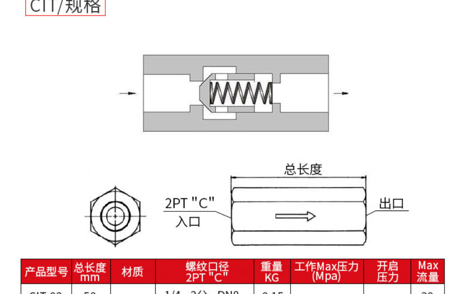 Трубчатый гидравлический обратный клапан CIT-02/03/04DIF-L10H обратный клапан прямого обратного клапана давления масла обратный клапан