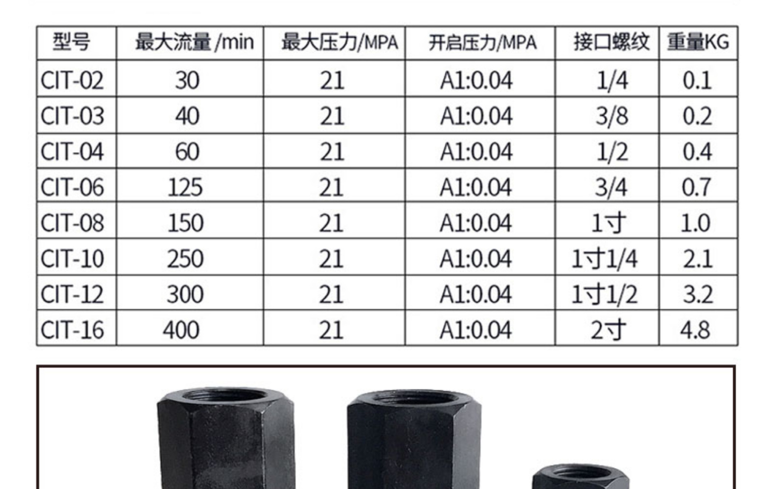 CIT-02 PT1/4; CIT-03 PT3/8; CIT-04 PT1/2; CIT-06 PT3/4; CIT-08 PT1''; CIT-10 PT11/4; CIT-12 PT11/2; DIF-L10H 18*1,5; DIF-L20H 27*2; DIF-L32H 42*2; А-Ха10 22*1,5; А-Х20 33*2; А-Н32
