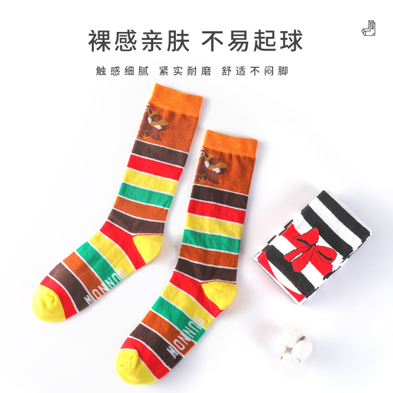 Осенне-зимние экспортные фестивальные модные хлопковые носки средней высоты в горизонтальную полоску, Турция, рождественские жаккардовые носки унисекс