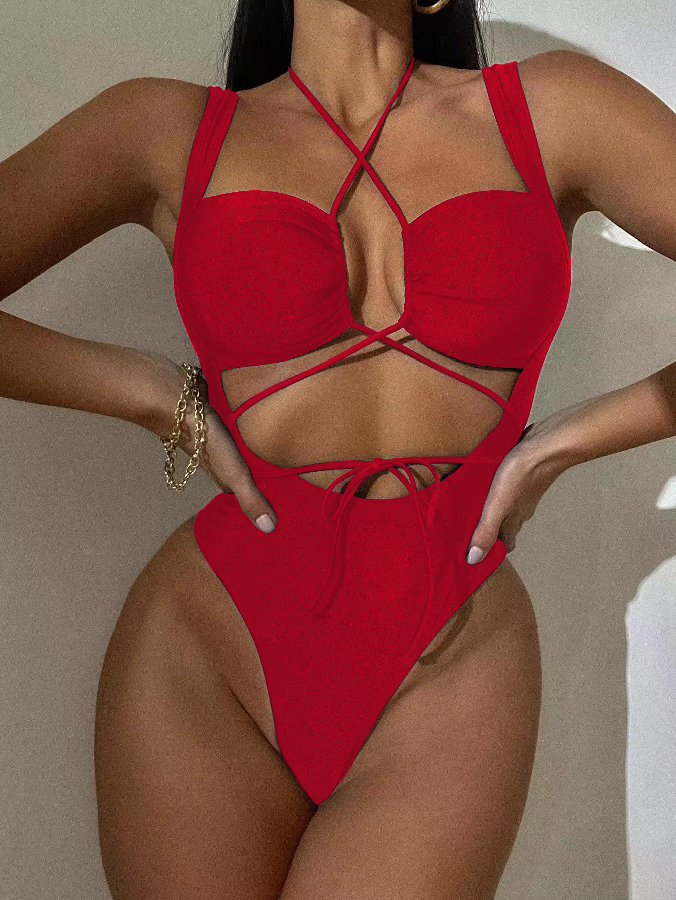 Женский бикини новый европейский и американский горячий распродажа сексуальный цельный купальник женский ремешок с полой шнуровкой бикини