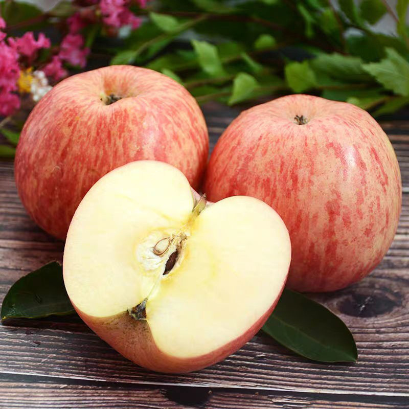 Yantai кристалл красный Fuji яблоко Хрустящие Сладкие сочные освежающие полосы красный все красные сладкие вкусные рок-конфеты сердце Qixia Apple