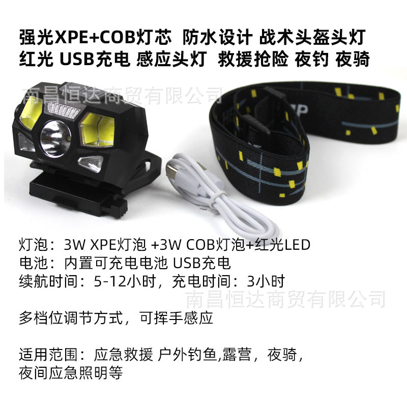 Fast Шлем фары с несколькими передачами XPE COB сильный свет водонепроницаемый дизайн размахивает индукционным сигналом USB зарядки