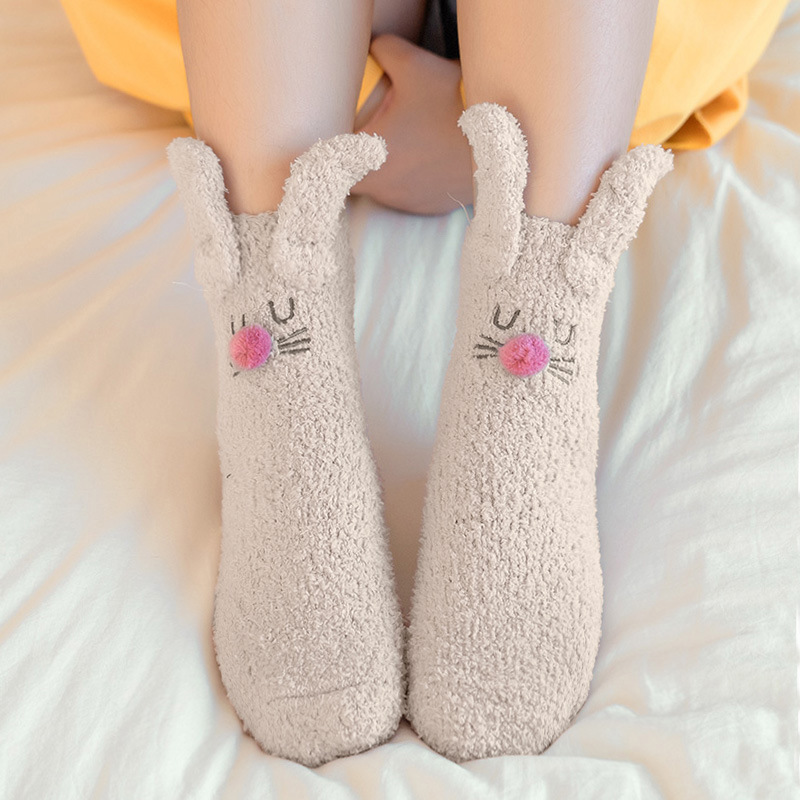 Носки из кораллового флиса для женщин, утепленные, с защитой от запаха, на флисовой подкладке, милые домашние носки для сна, носки для послеродового периода, носки для дома.