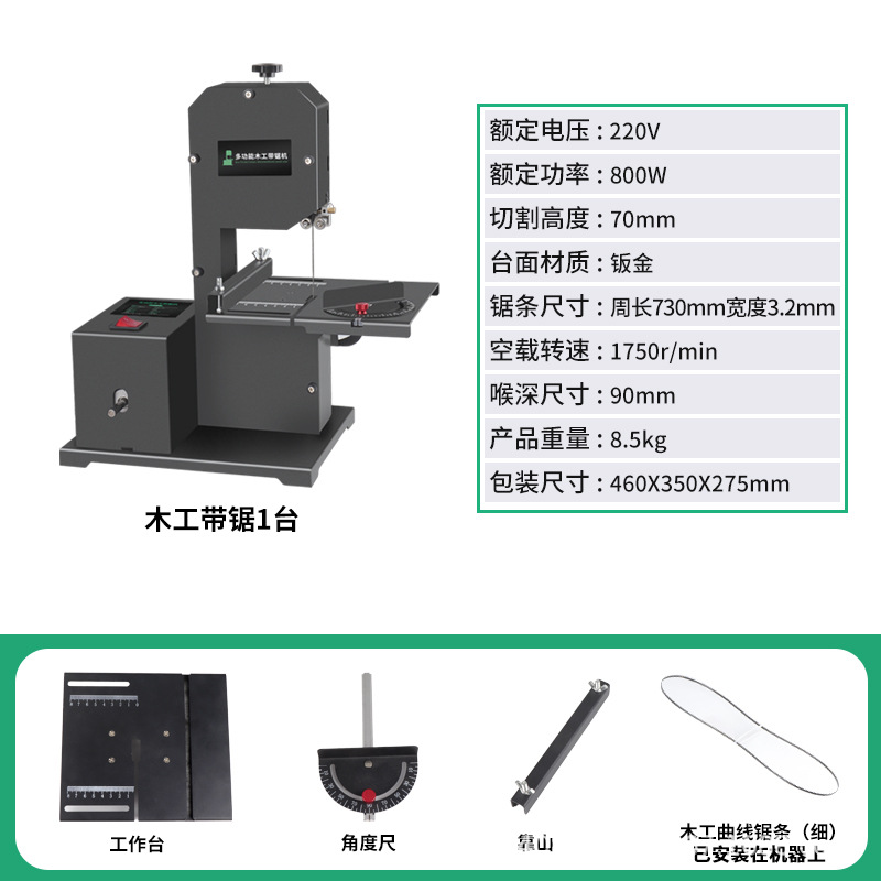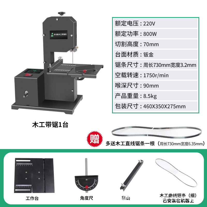 Узел ленточной пилы Стандартный; Стандартная ленточная пила + полотно для деревообработки; Ленточная пила + деревообрабатывающий пильный диск + шлифовальный круг + тканевый круг + сверлильный патрон + песочный диск