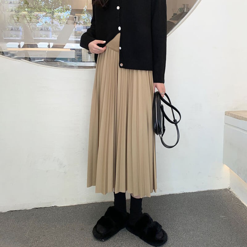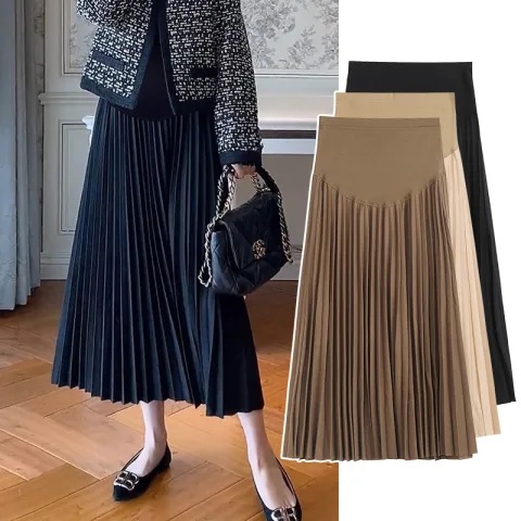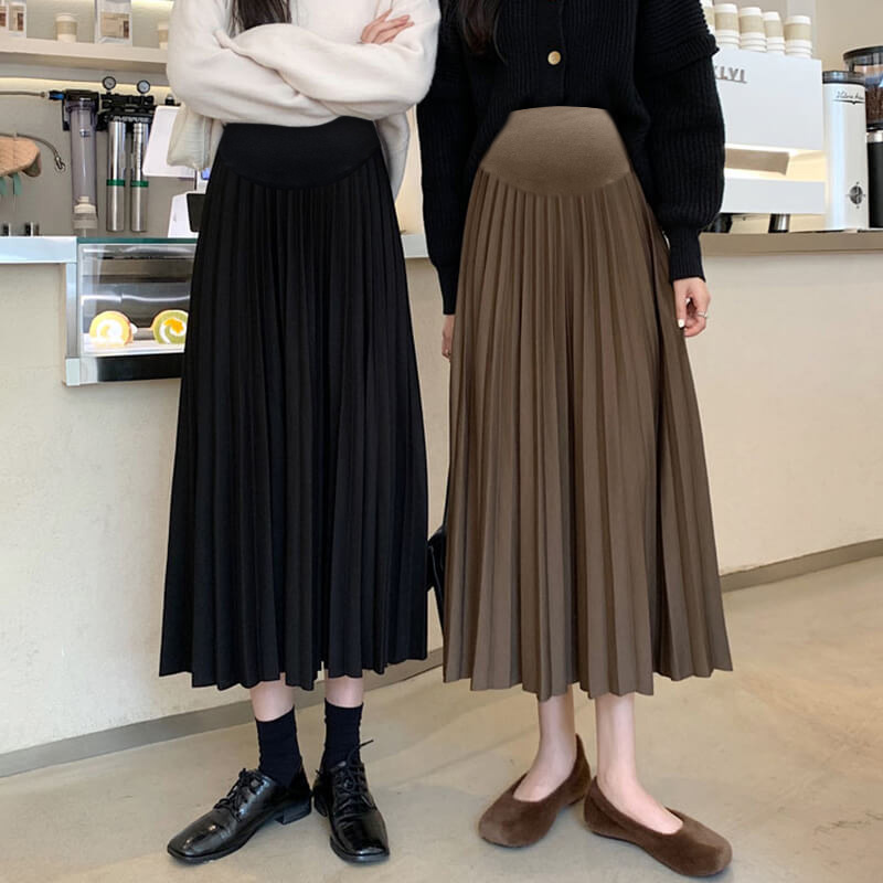 Длинная плиссированная юбка в корейском стиле «Мияке» с эффектом поддержки живота, свободная, для беременных, осень-зима 2024