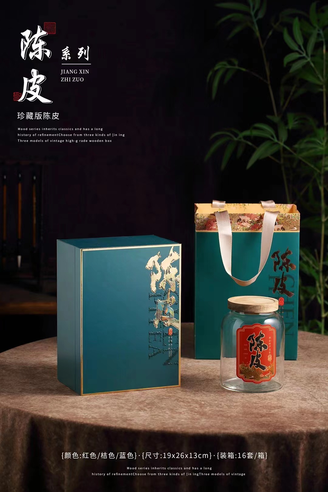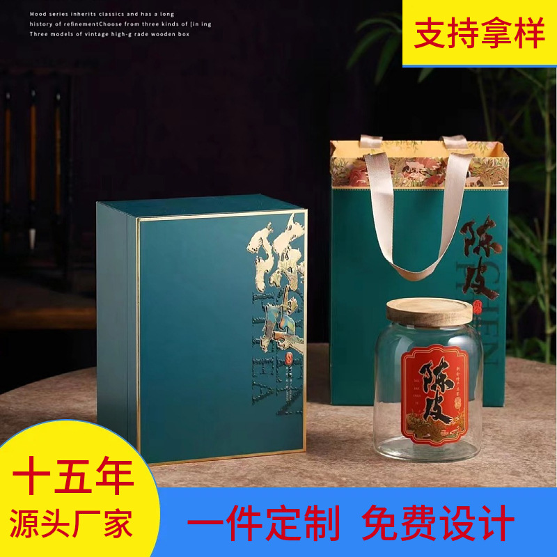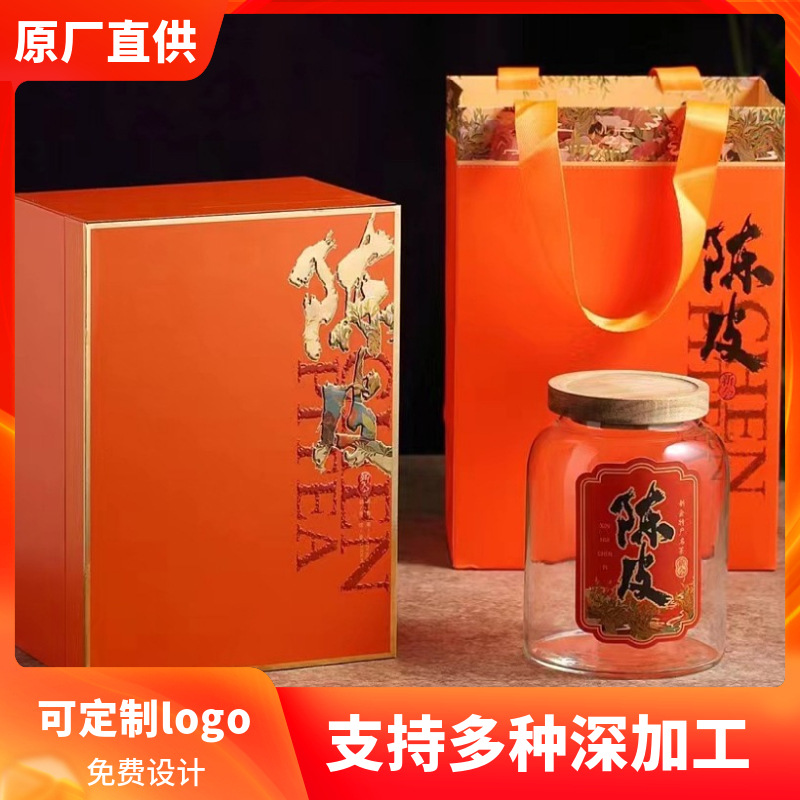 新会陈皮橙色包装盒空礼盒半斤玻璃瓶装密封罐储存罐陈皮礼盒特级