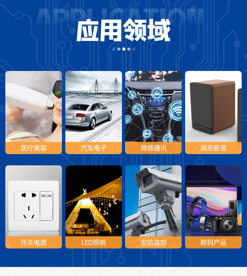 Автомобильное электронное бортовое оборудование, энергосберегающие лампы, электронные балласты, Электроника связи, панели жидкокристаллического дисплея высоковольтные, освещение СИД, ЕТК.