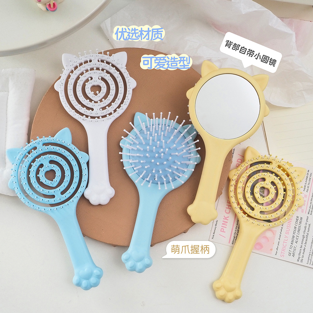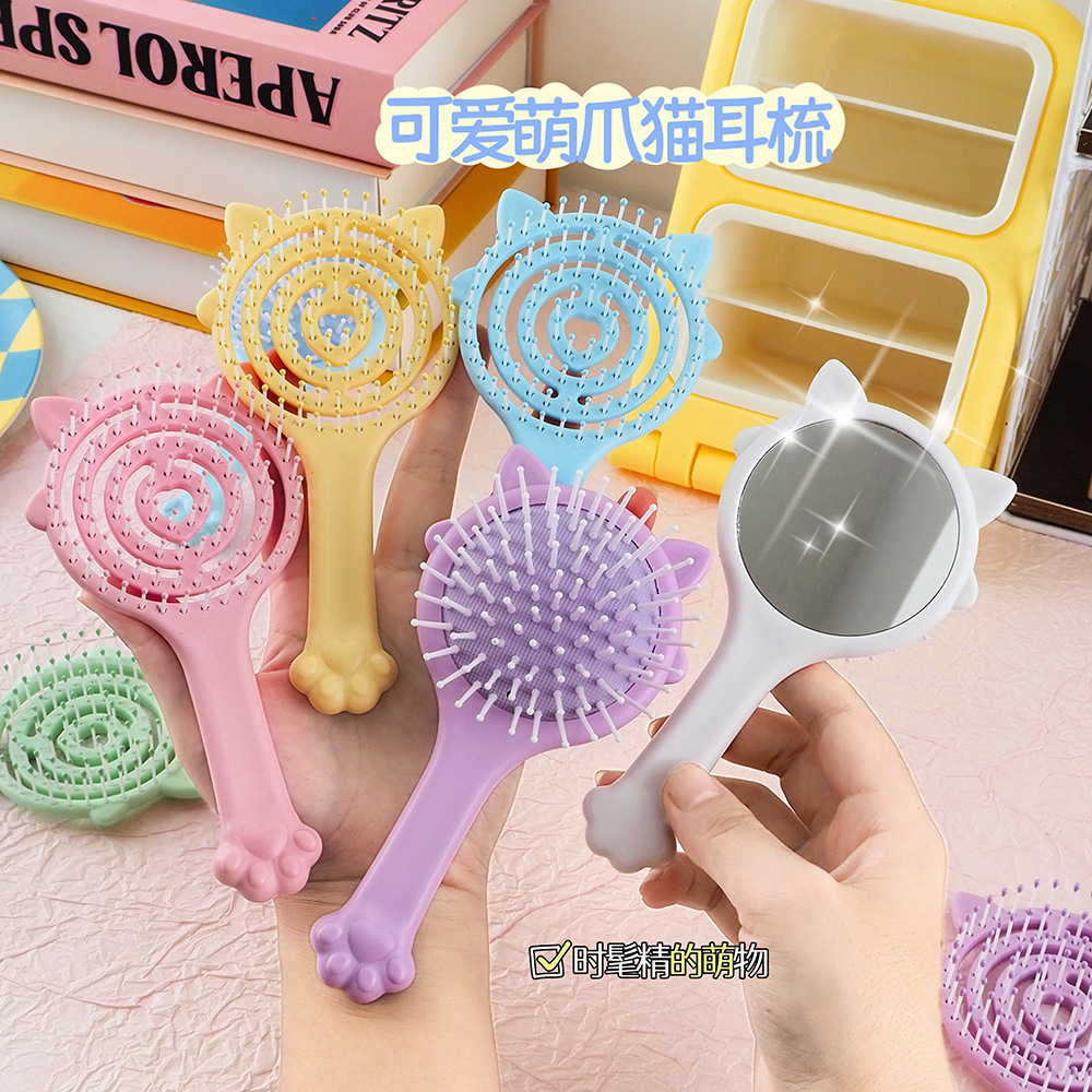 Милая расческа-подушка для волос с зеркалом, ручная расческа-подушка 2-в-1, портативная массажная расческа-подушка в конфетных цветах