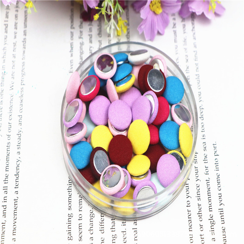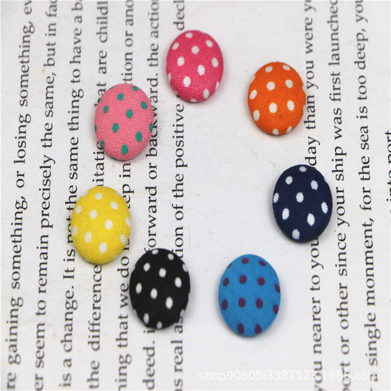 畅销布艺包布扣,宽1.5厘米,厚0.4厘米,两个款式,一个是圆点布料,一个是素色,都是混装,类似的有桃心 圆形和毛毛 灯芯绒的,款式多,量大可以定做加工。