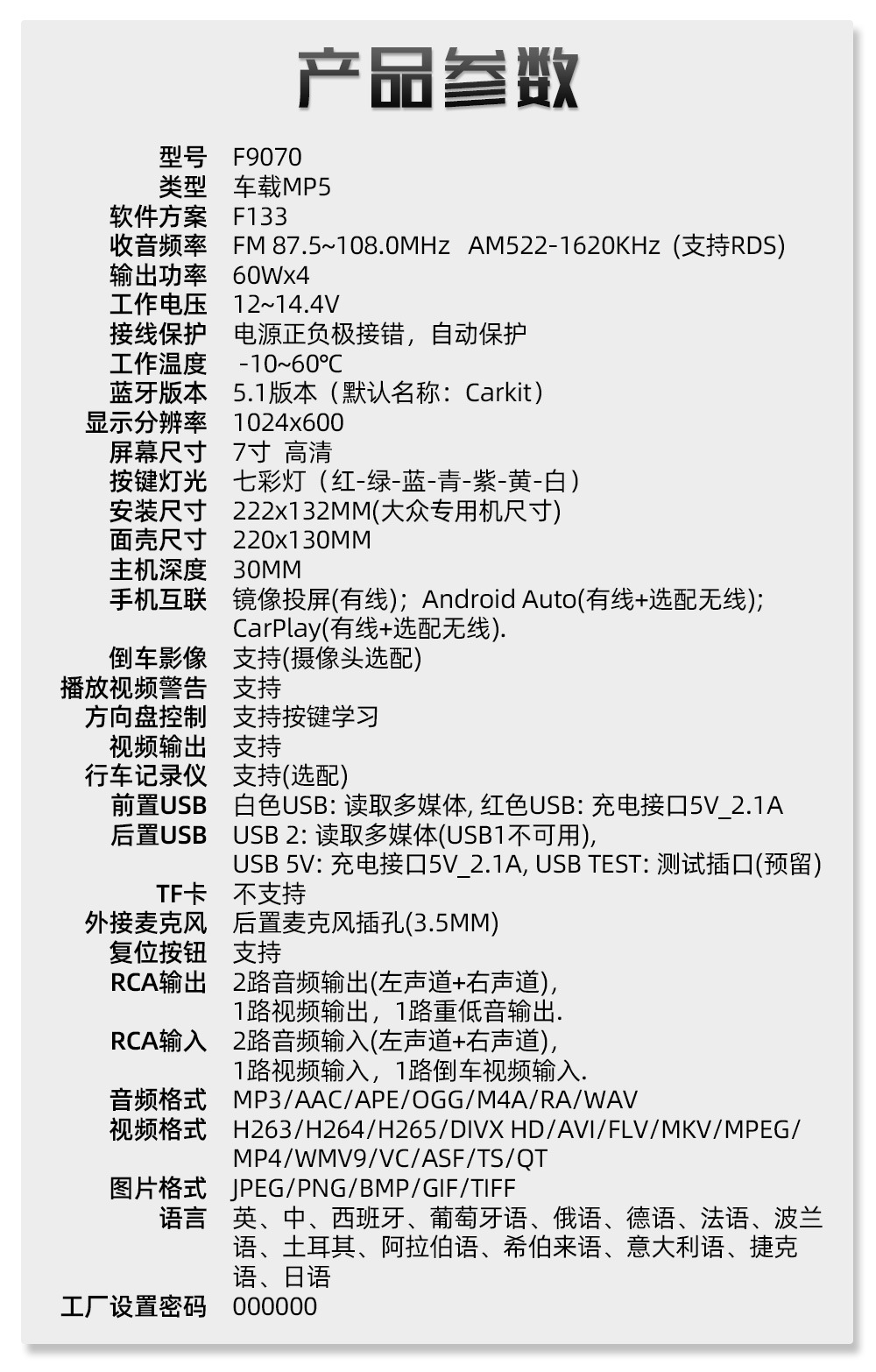 F9070C (проводной carplay); F9070W (беспроводная игра)