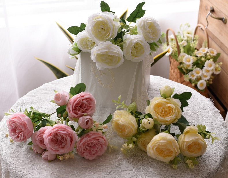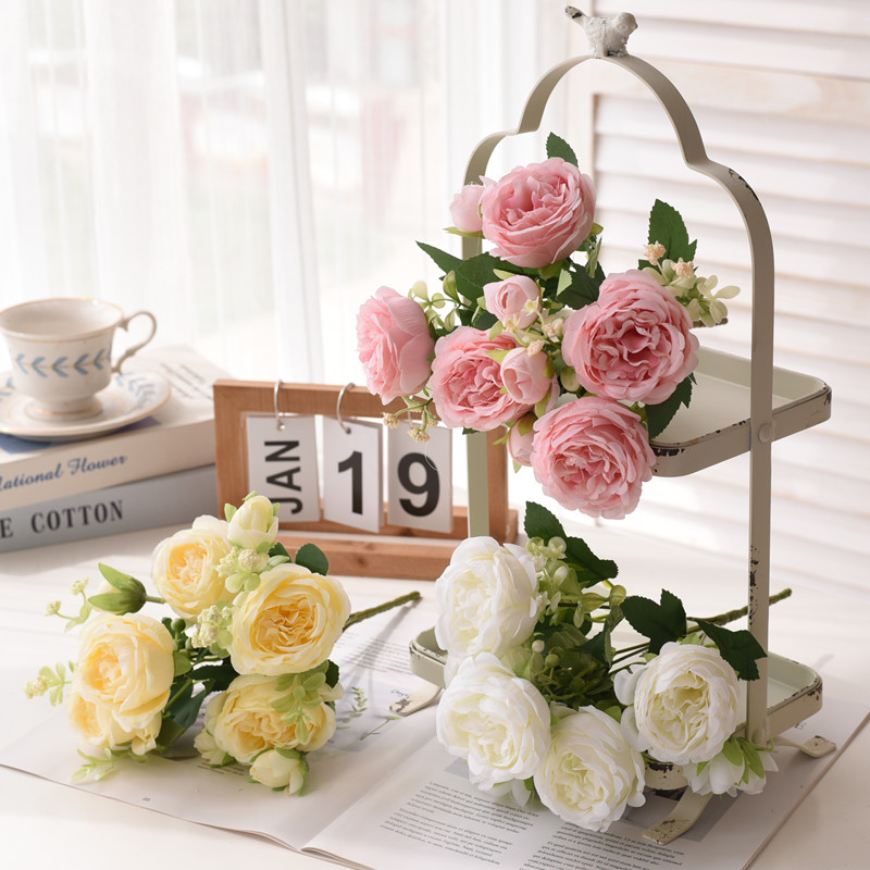 В наличии оптом моделирование украшения дома Искусственные цветы маленький букет роз моделирование свадебного макета 5 персидских роз