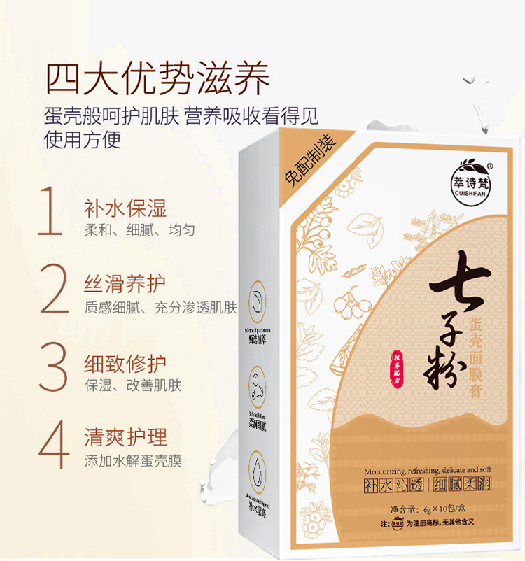 Экстракт порошка Шифан Цизи Маска из яичной скорлупы Паста в штучной упаковке Отбеливающая увлажняющая опреснительная краска Цветные пятна Тонкие линии Порошок маски Нежный и мягкий