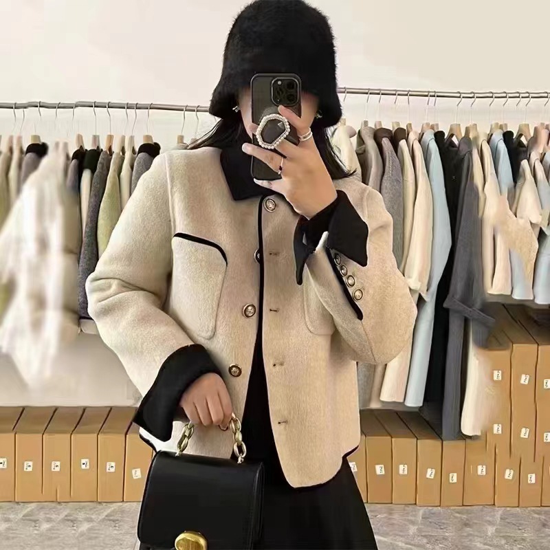Новая элегантная женская шуба-пальто 2025 года, осенне-зимняя, универсальная, в стиле «маленький аромат», шерстяное, корейская версия