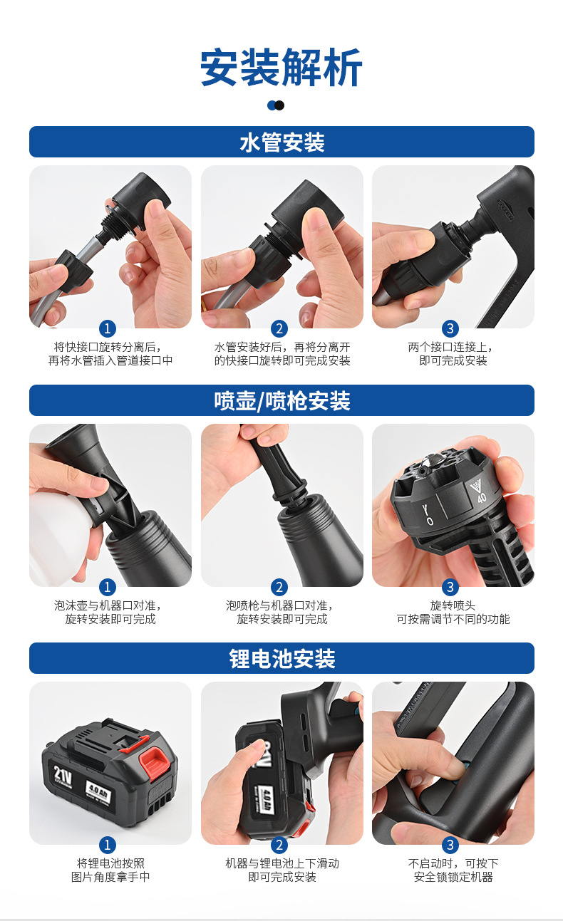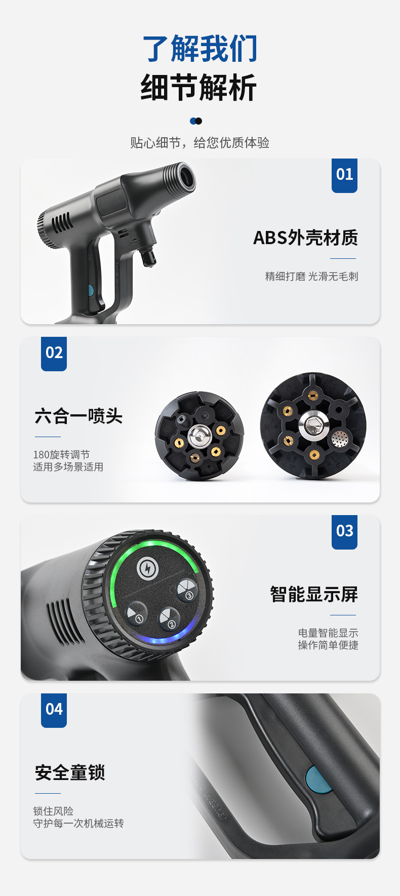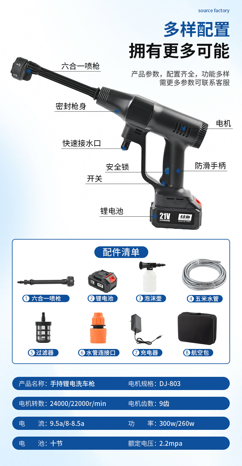 Ручной пистолет для мойки автомобилей с литиевой батареей