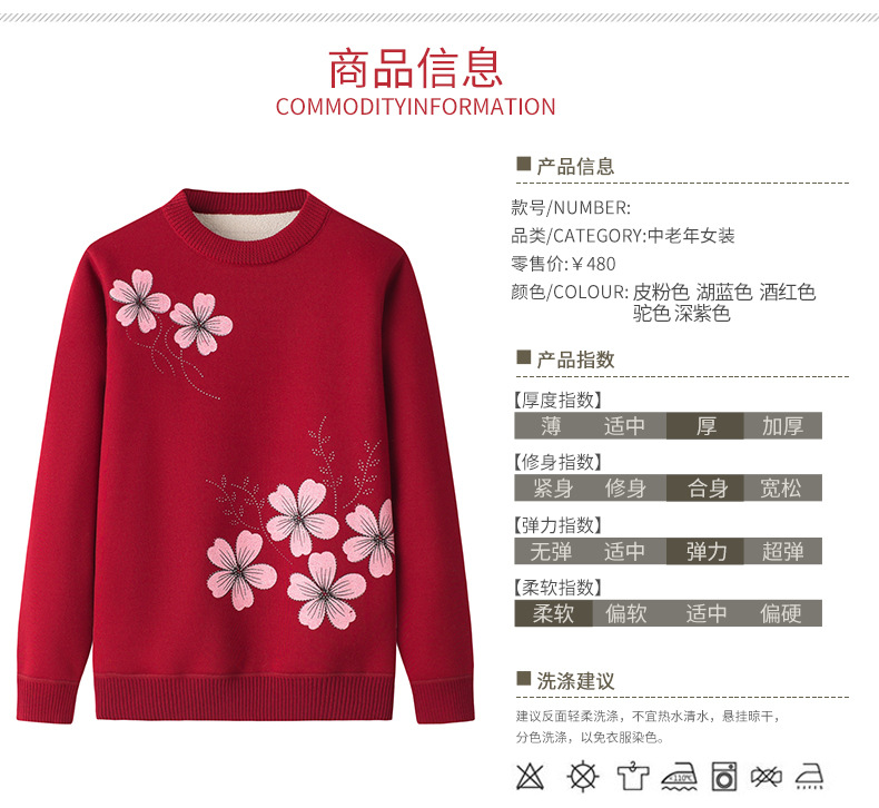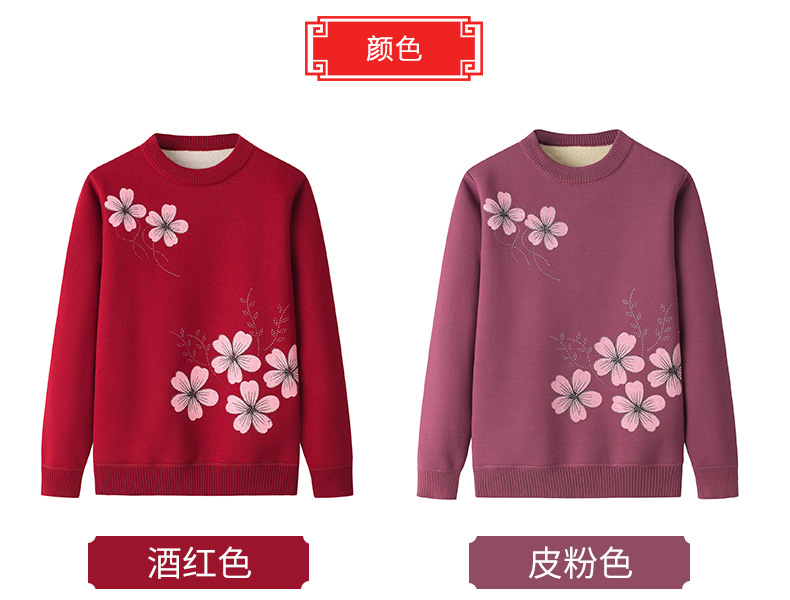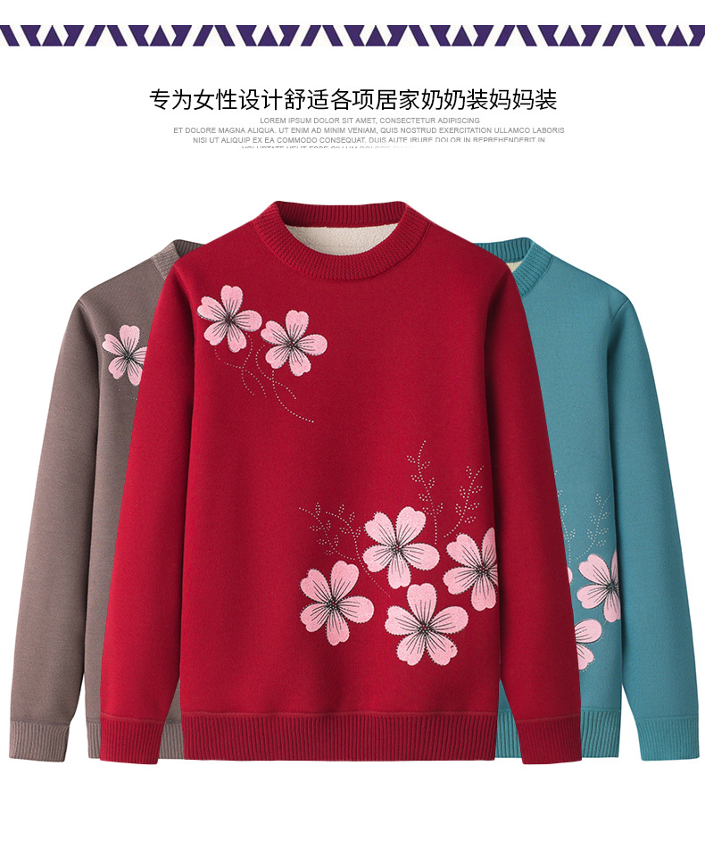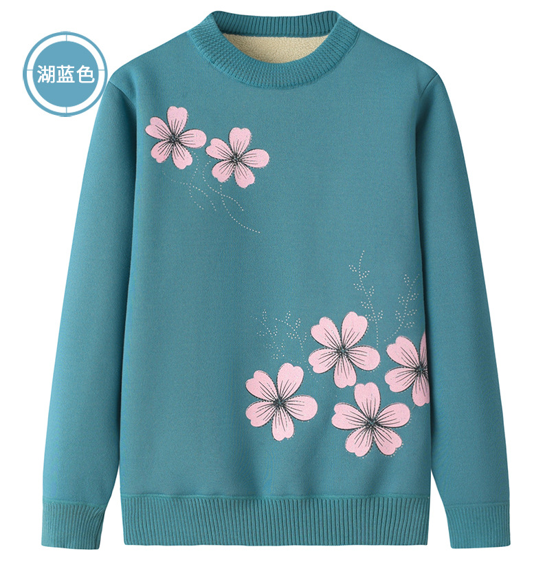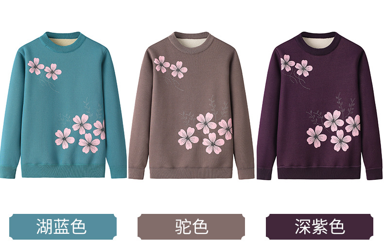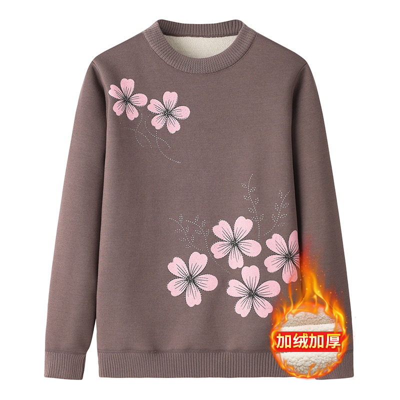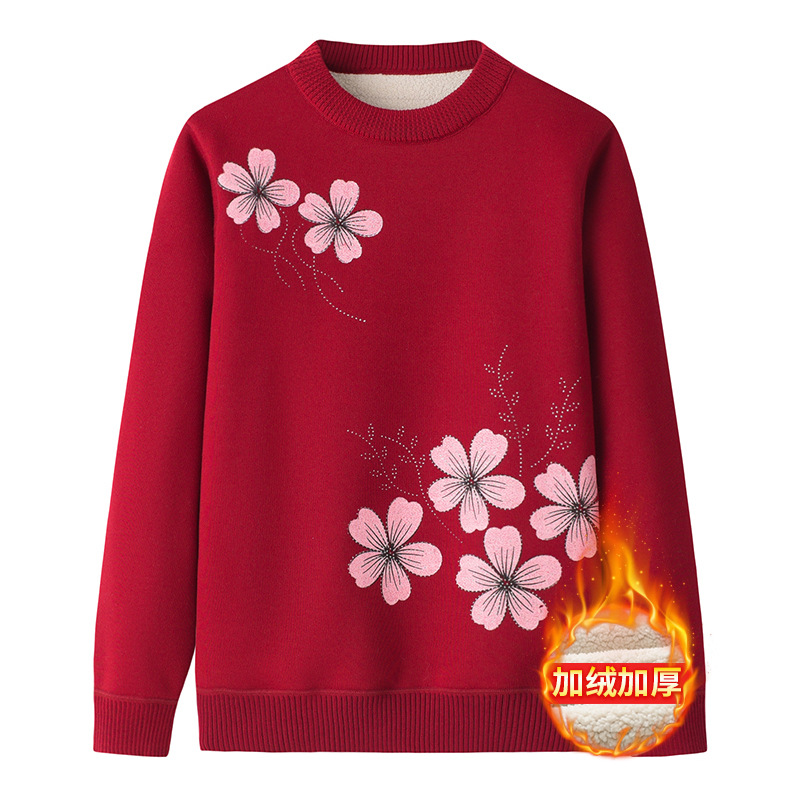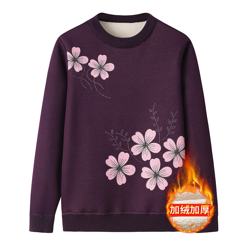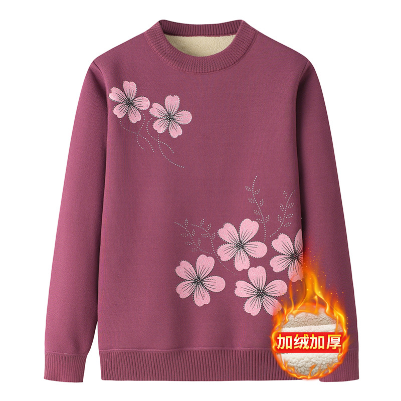 Зимний теплый свитер для матери, осенне-зимняя женская одежда для бабушек среднего и пожилого возраста, цельная утолщенная Базовая рубашка на флисовой подкладке, верхняя одежда