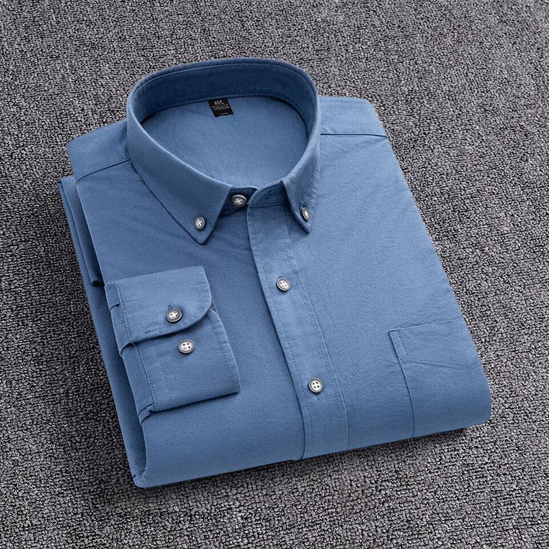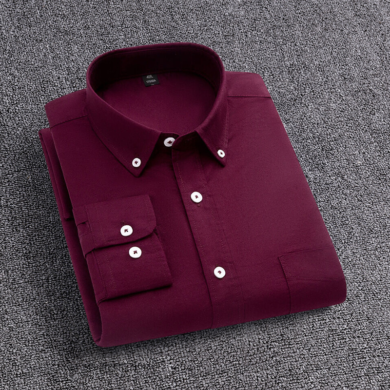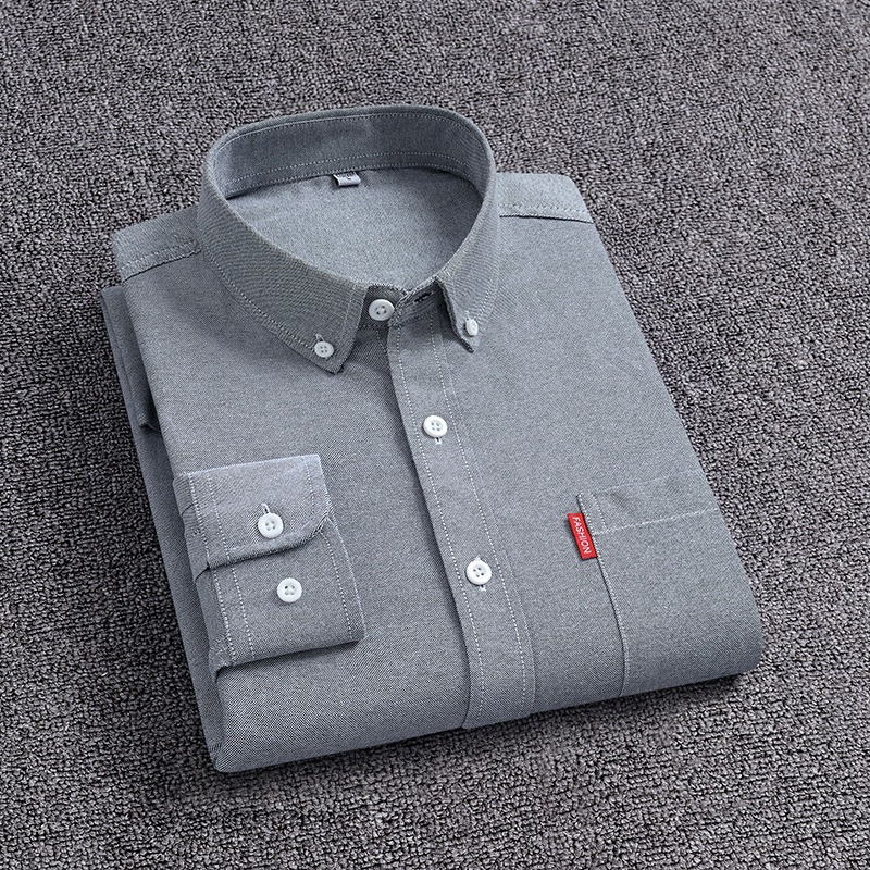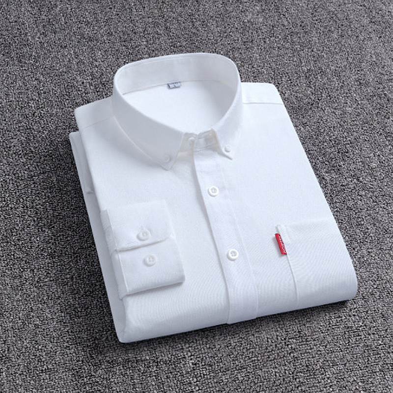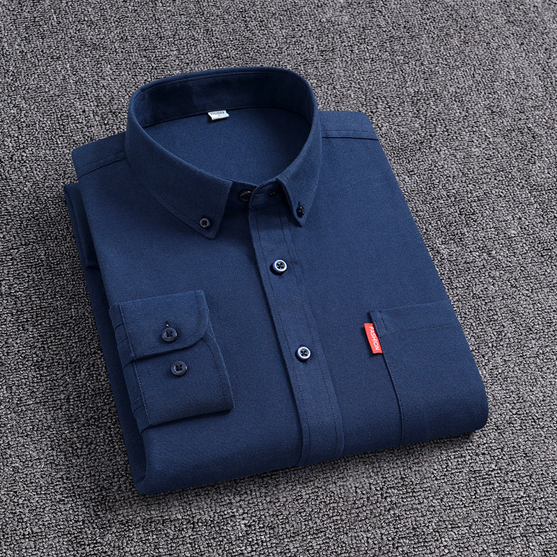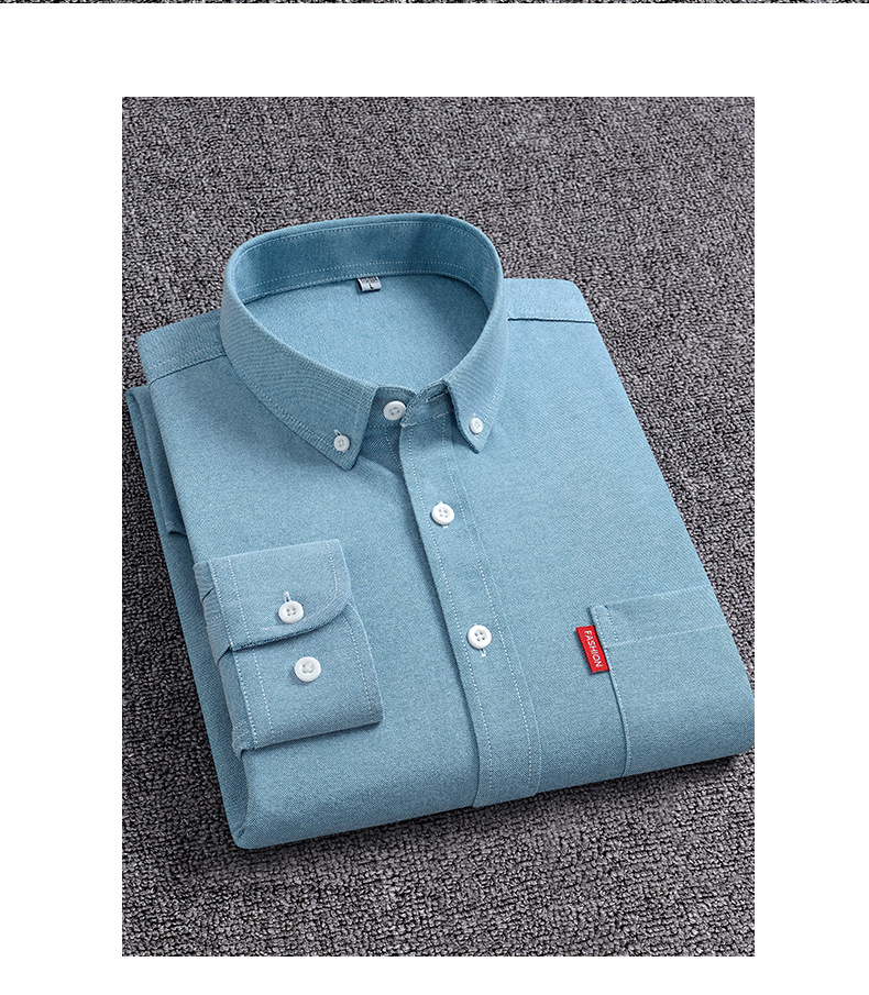 Пригородный стиль мужская оксфордская прядильная рубашка повседневная рубашка с длинными рукавами весной и осенью сплошной цвет воротник для молодых людей с длинными рукавами оптом