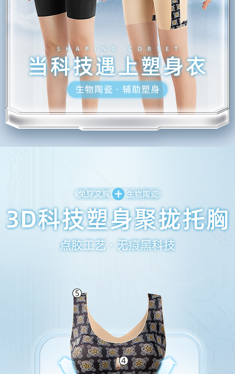 Живые взрывы, одежда для тела без бюстгальтера, биокерамическая форма, бесследная черная технология, U-образная одежда для тела, Женская