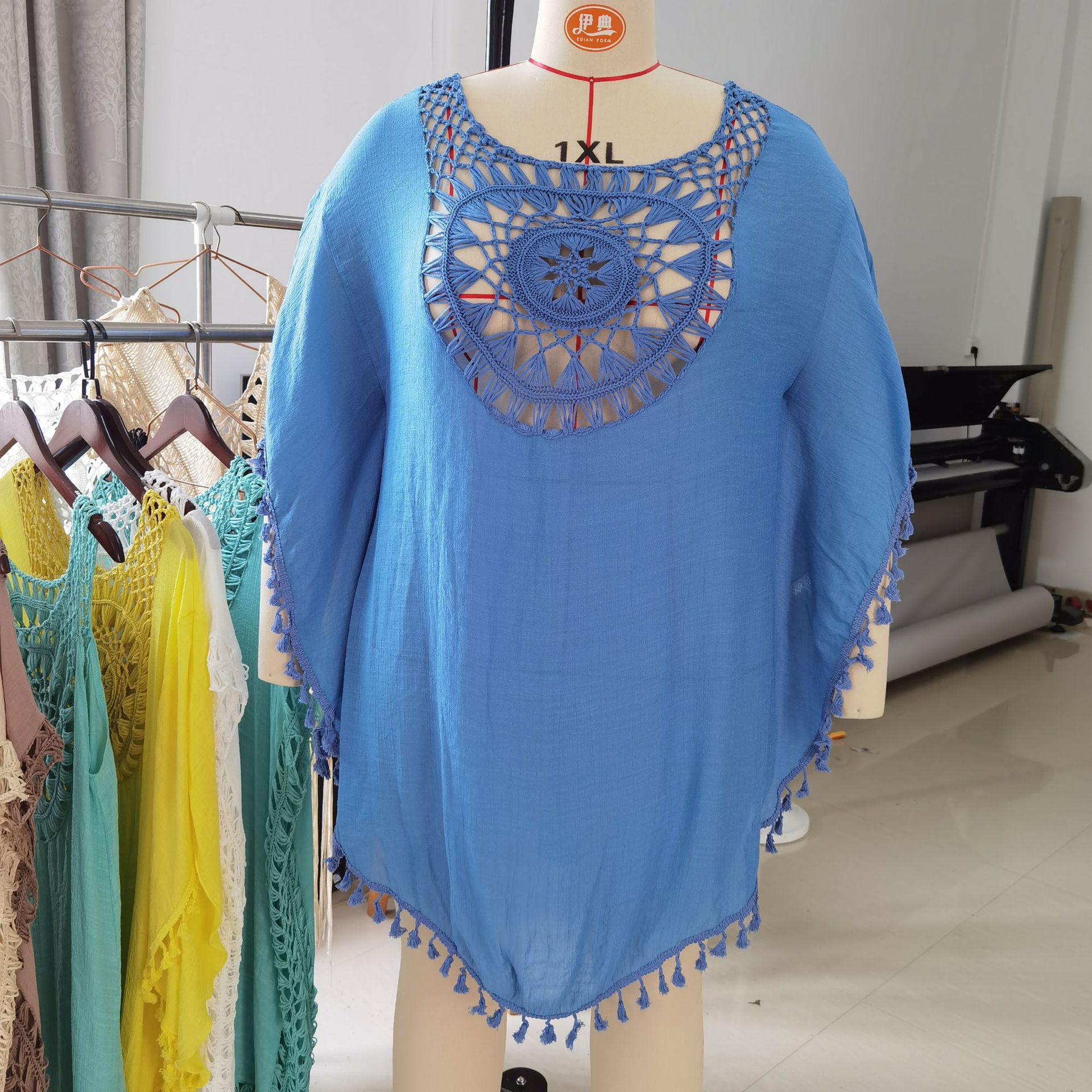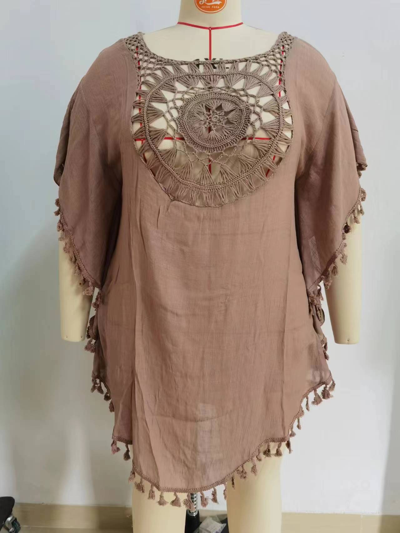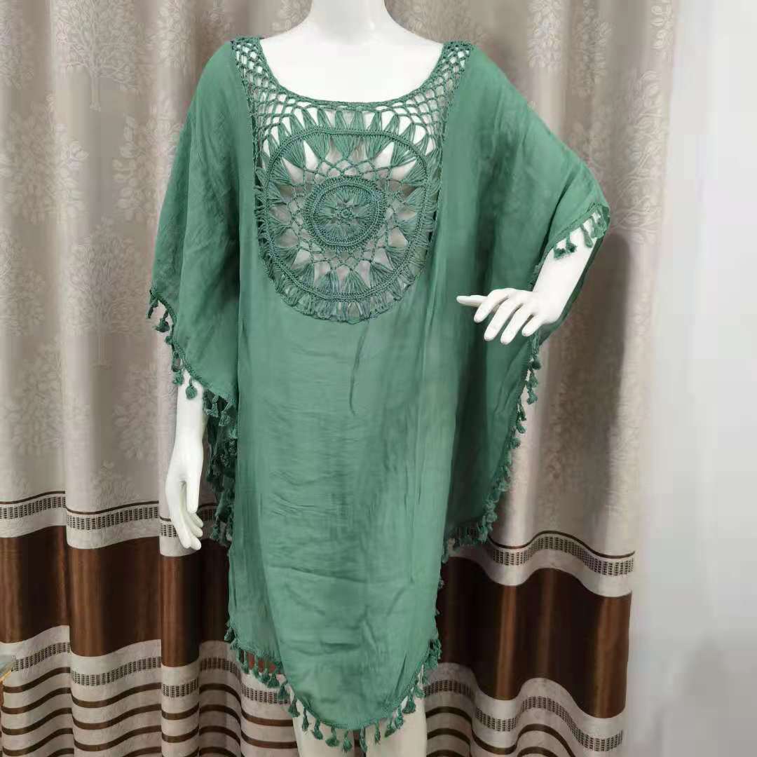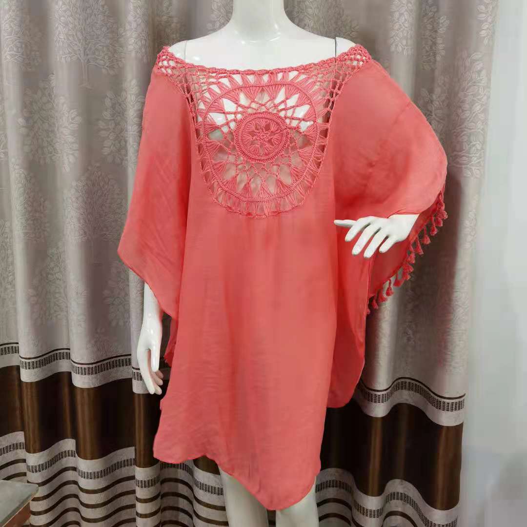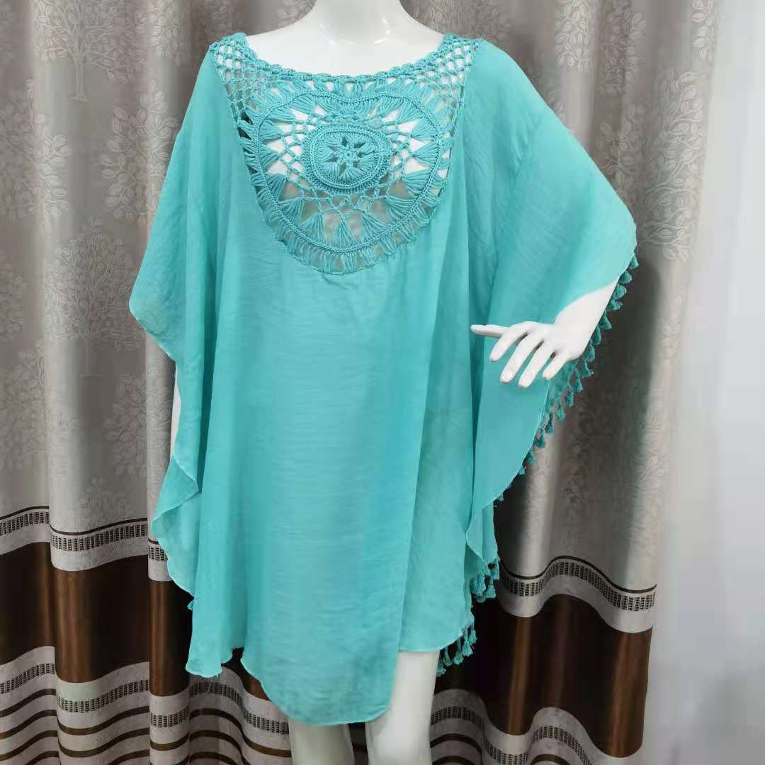 Летнее Новое Стильное вязаное крючком пляжное платье с цветочной строчкой, модная свободная праздничная одежда больших размеров для защиты от солнца, Женский Топ, полая блузка