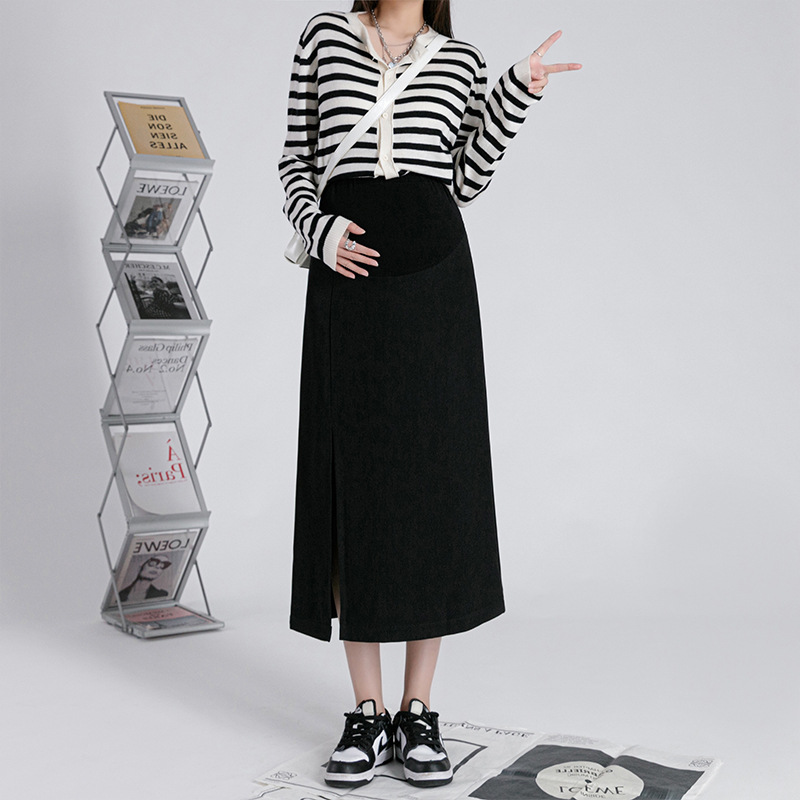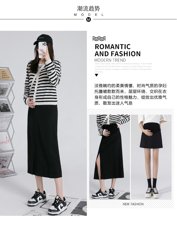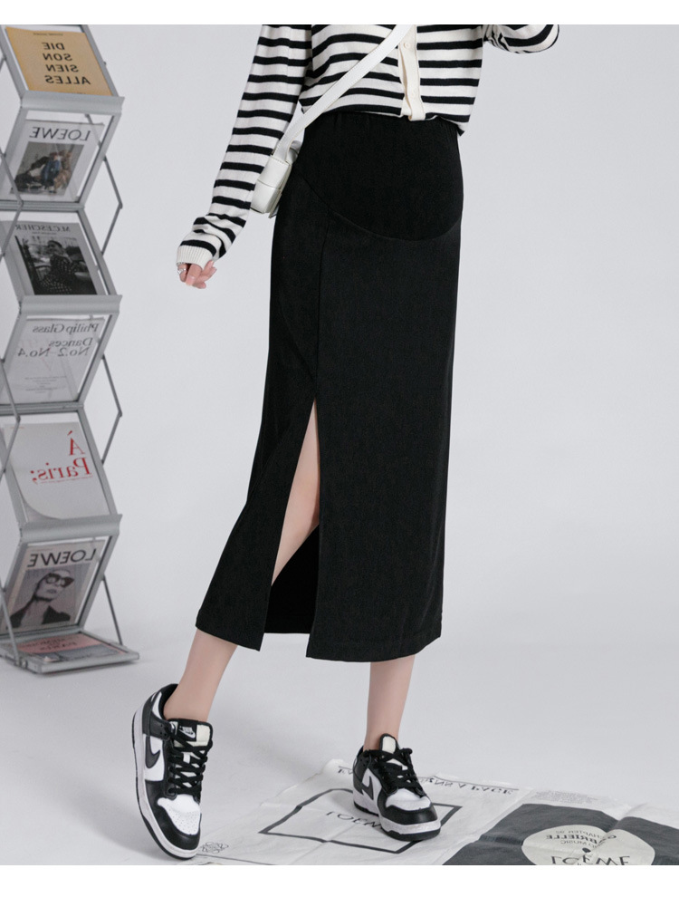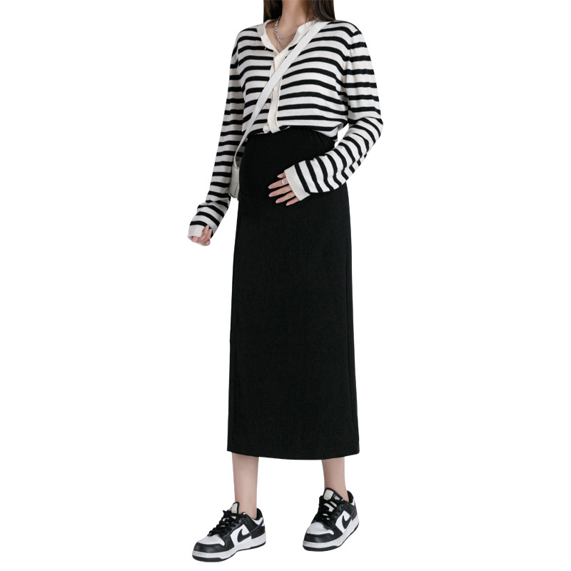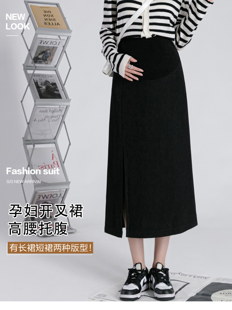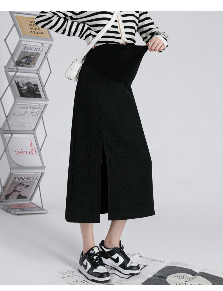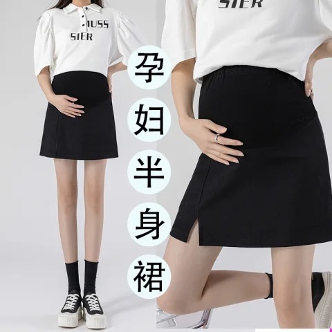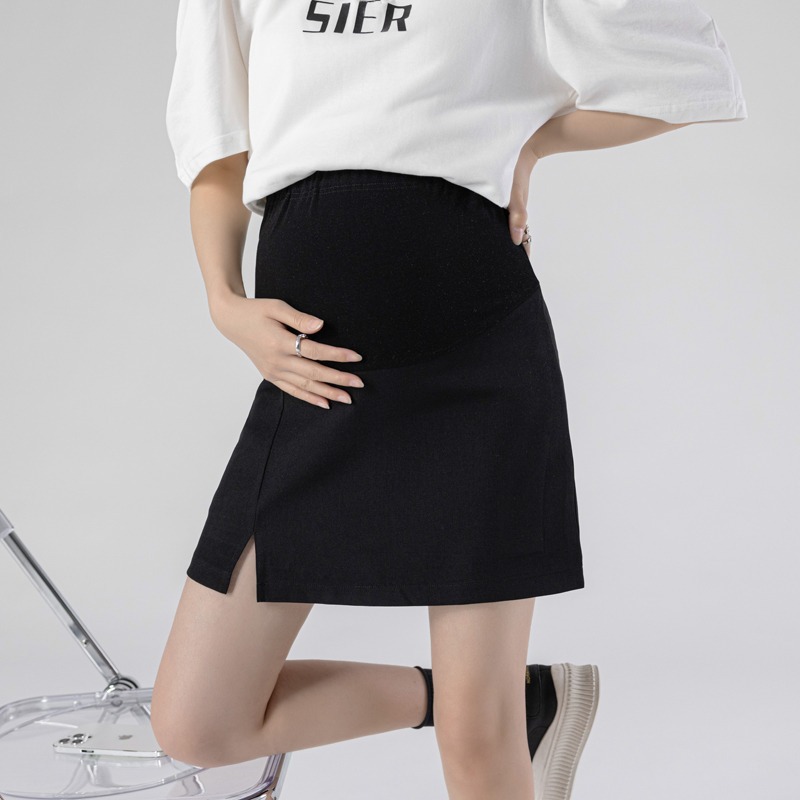 Юбка для беременных, новая летняя тонкая юбка средней длины с высокой талией и разрезом, юбка-костюм, юбка для беременных