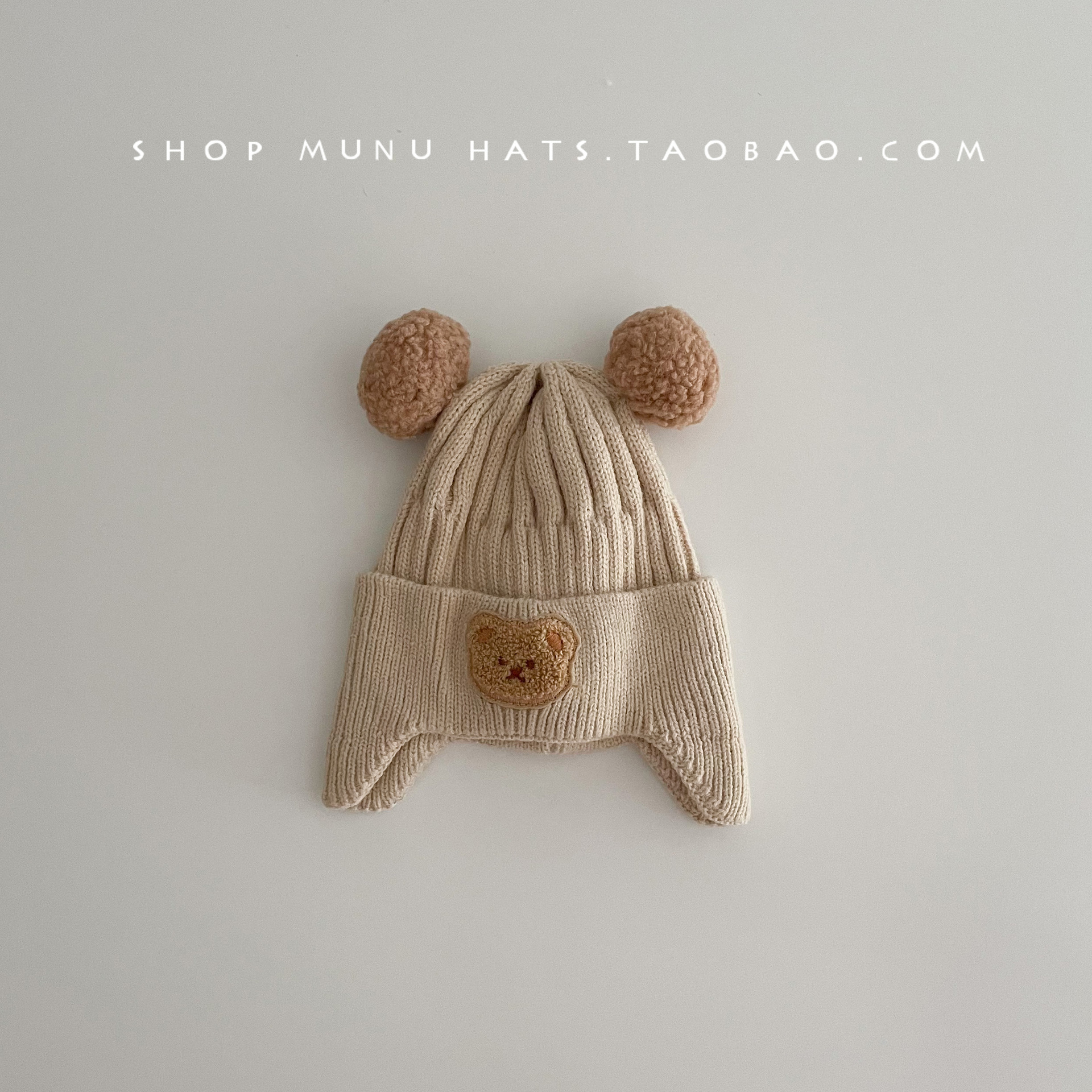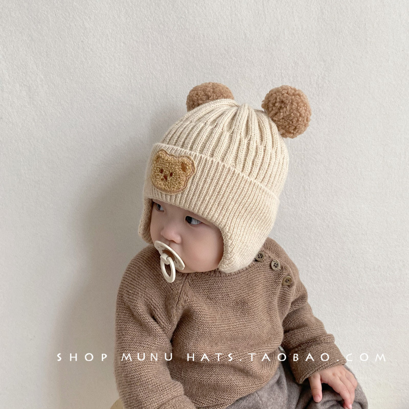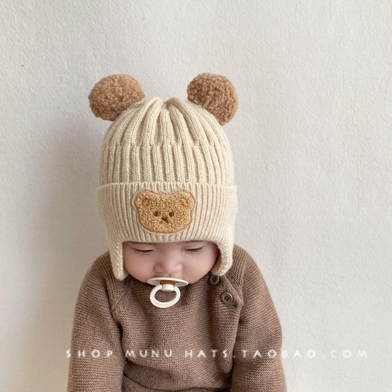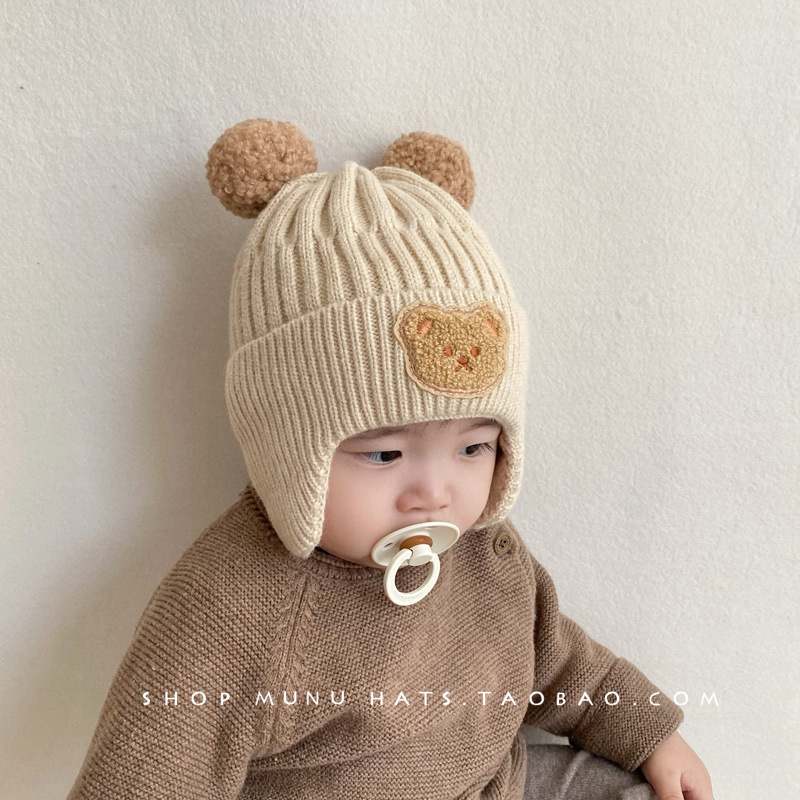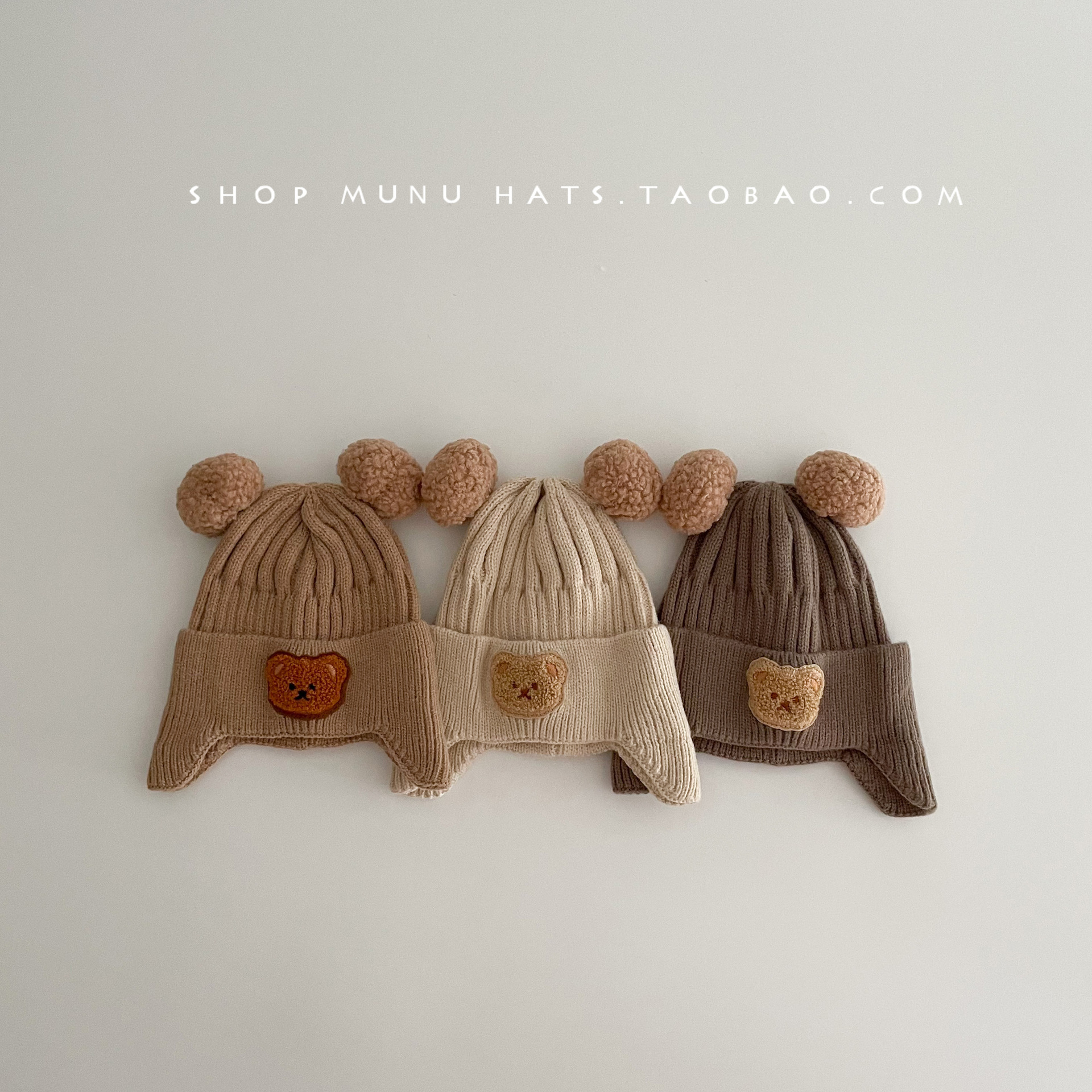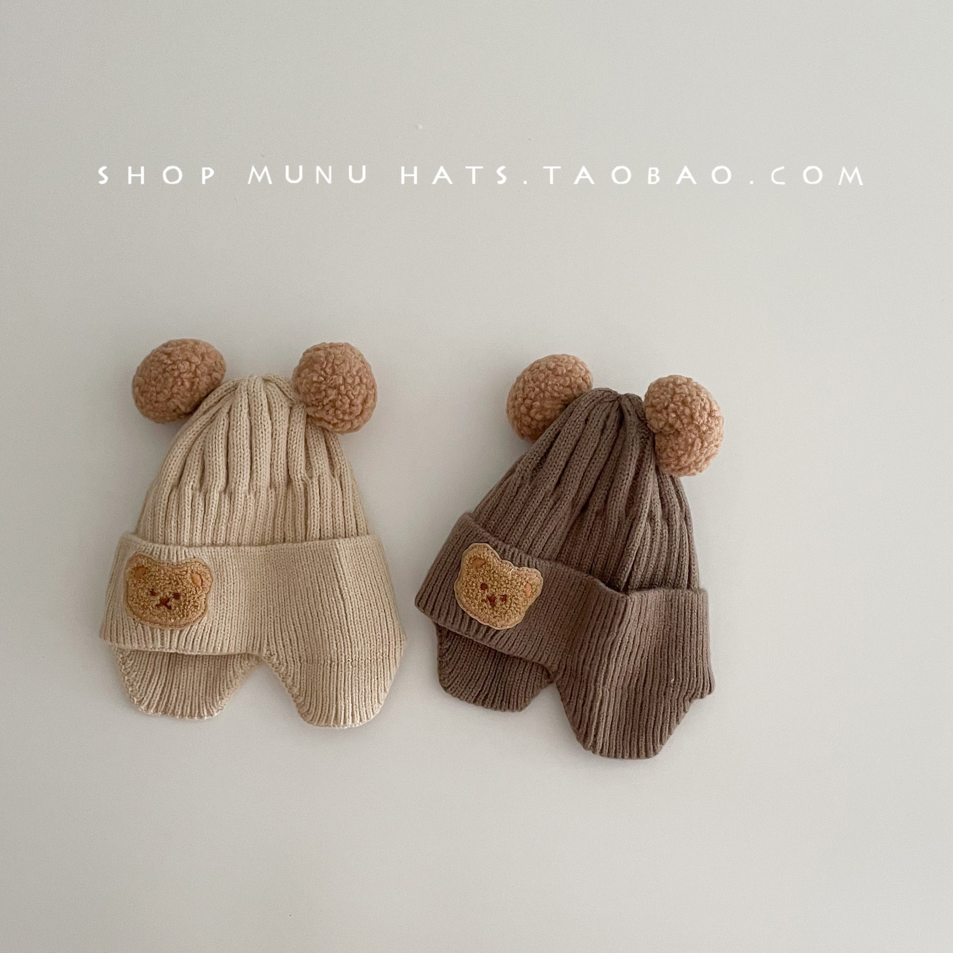 Детская шерстяная шапка, милые наушники-медведи, детская зимняя утолщенная теплая вязаная шапка, детская шапка в Корейском стиле