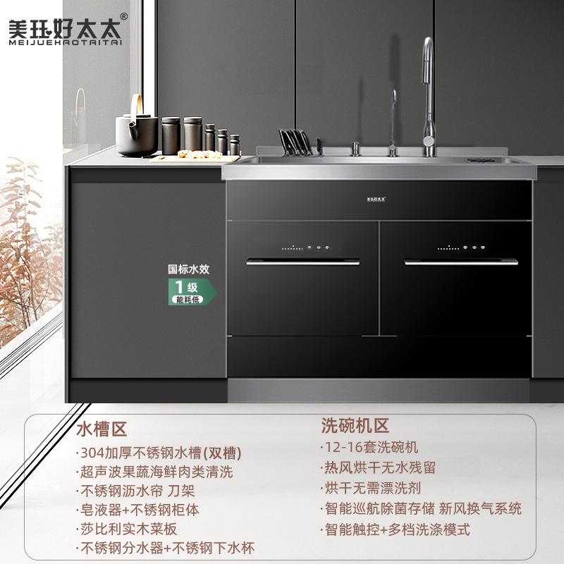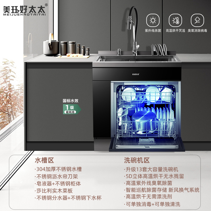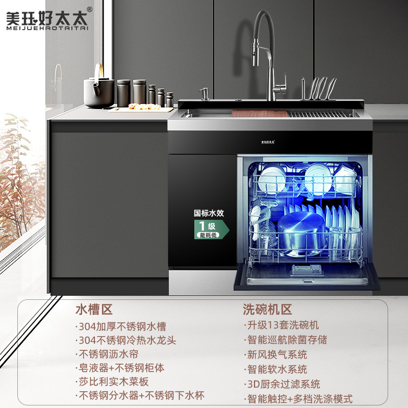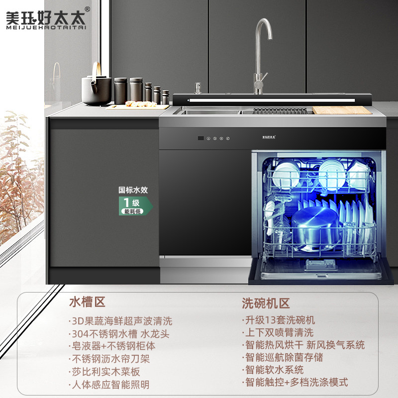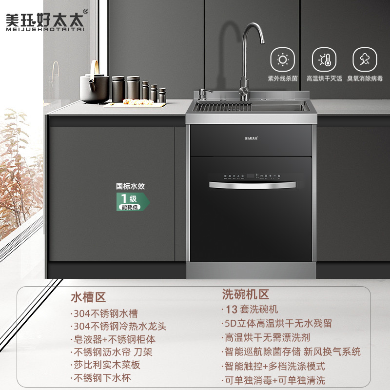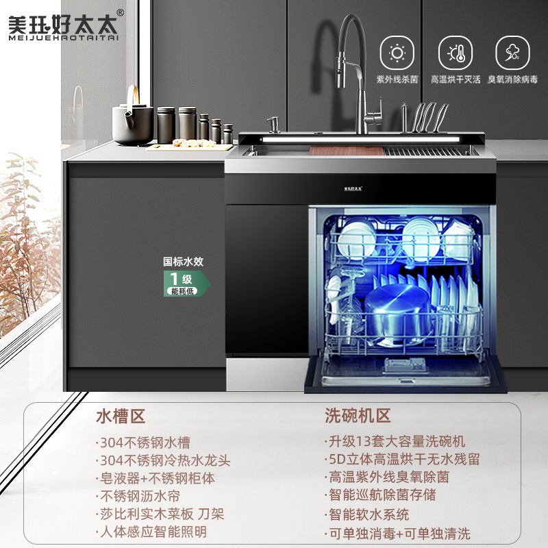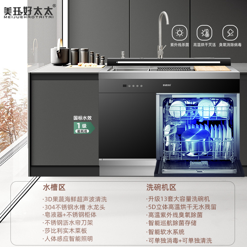 Встроенная раковина Посудомоечная машина Интегрированная Бытовая 13 комплектов автоматической ультразвуковой очистки двухзвездочный дезинфекционный шкаф высокотемпературная сушка