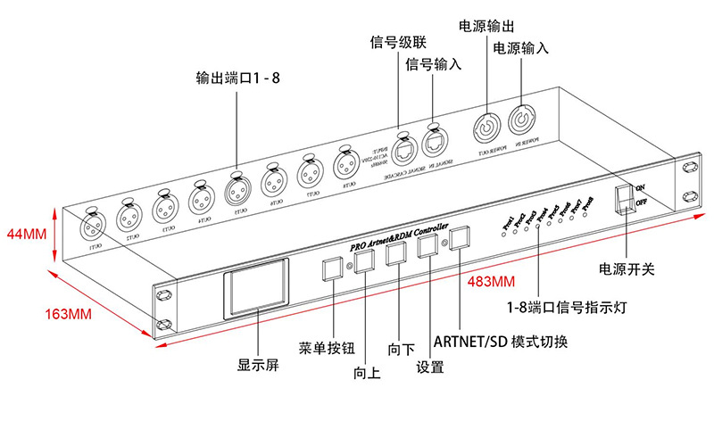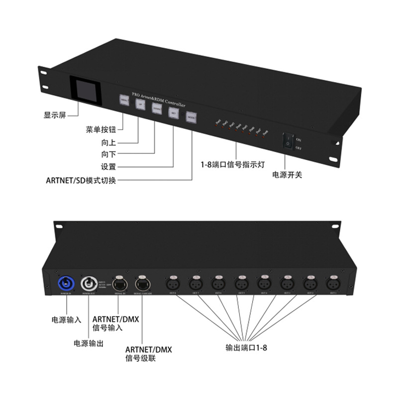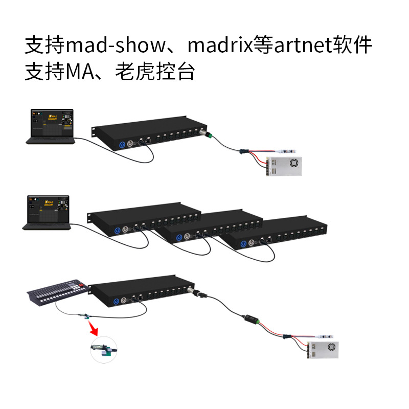 Протокол LEDartnet поддерживает передачу DMXSPI, консоль расширения сети сценического освещения, 256 пультов дистанционного управления.