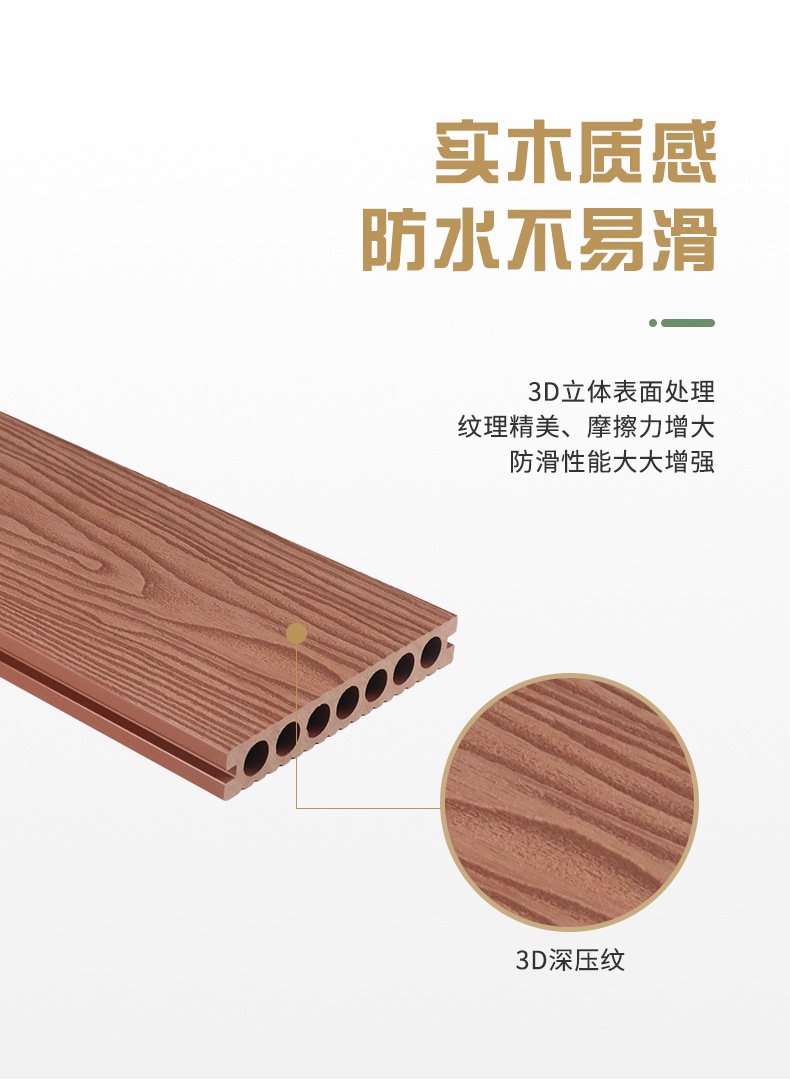 Оптовая продажа от производителя: уличное водонепроницаемое напольное покрытие из древесно-полимерного композита с имитацией дерева, круглые отверстия, для двора и террасы, 3D глубокая рельефная поверхность.