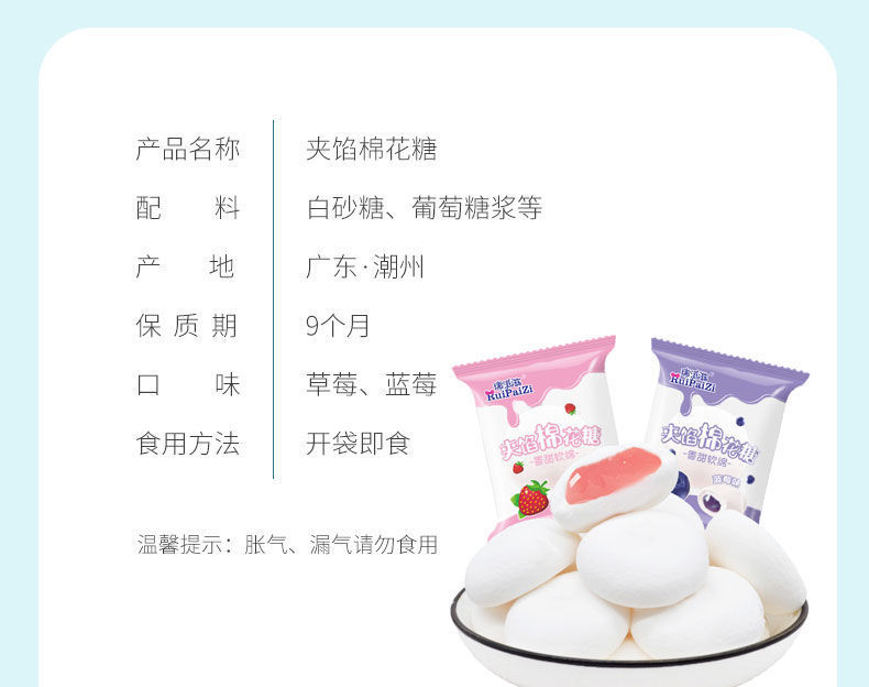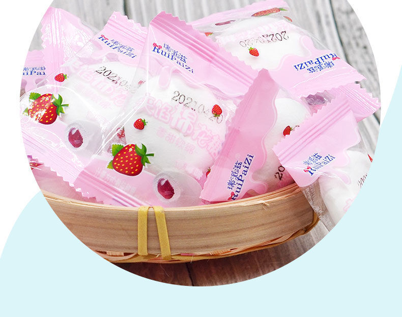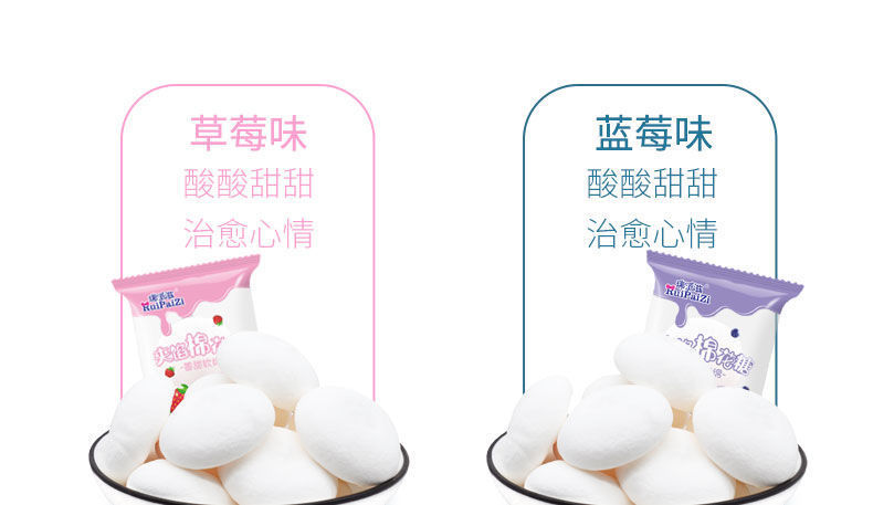 Маршмеллоу Rui Pai Zi оптом, в индивидуальной упаковке, со вкусом фруктов: клубника, черника, мята, мягкие конфеты-снеки с эффектом взрыва вкуса