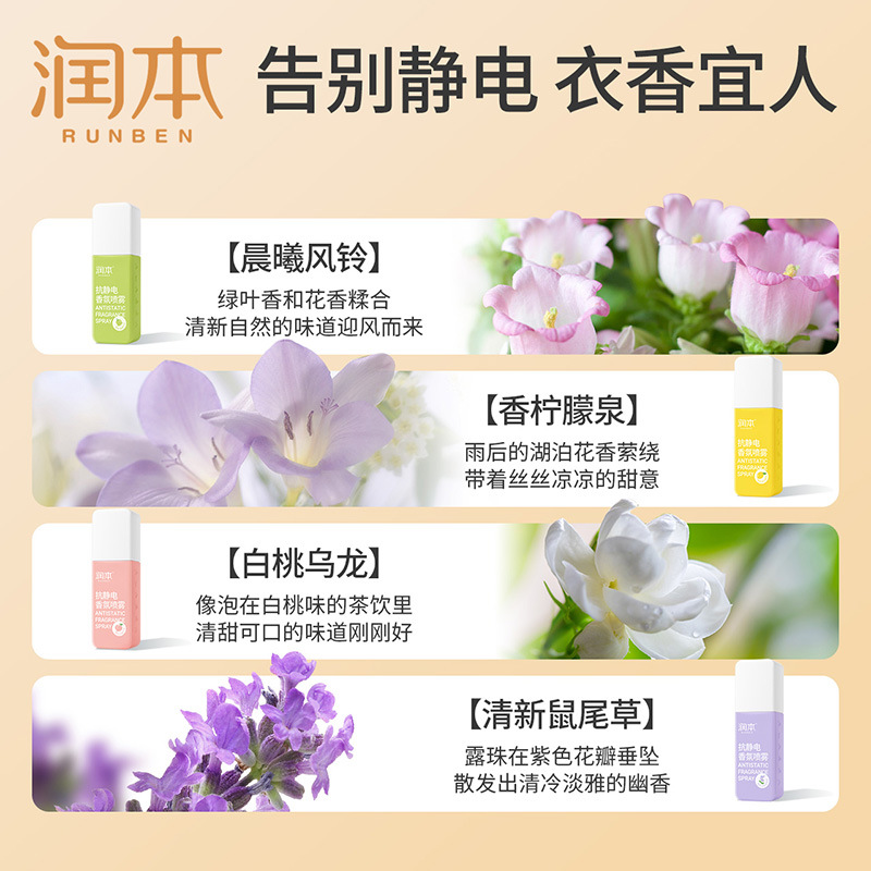 Антистатический ароматический спрей 75ml (утренний колокольчик)-издание 2024; Антистатический ароматический спрей 75 мл (Summer Dream)-издание 2024; Антистатический ароматический спрей 75ml (сад после дождя)-издание 2024; Антистатический ароматический спрей 75 мл (белый персиковый улун); Антистатический ароматический спрей Runben 75 мл (цветок камелии)