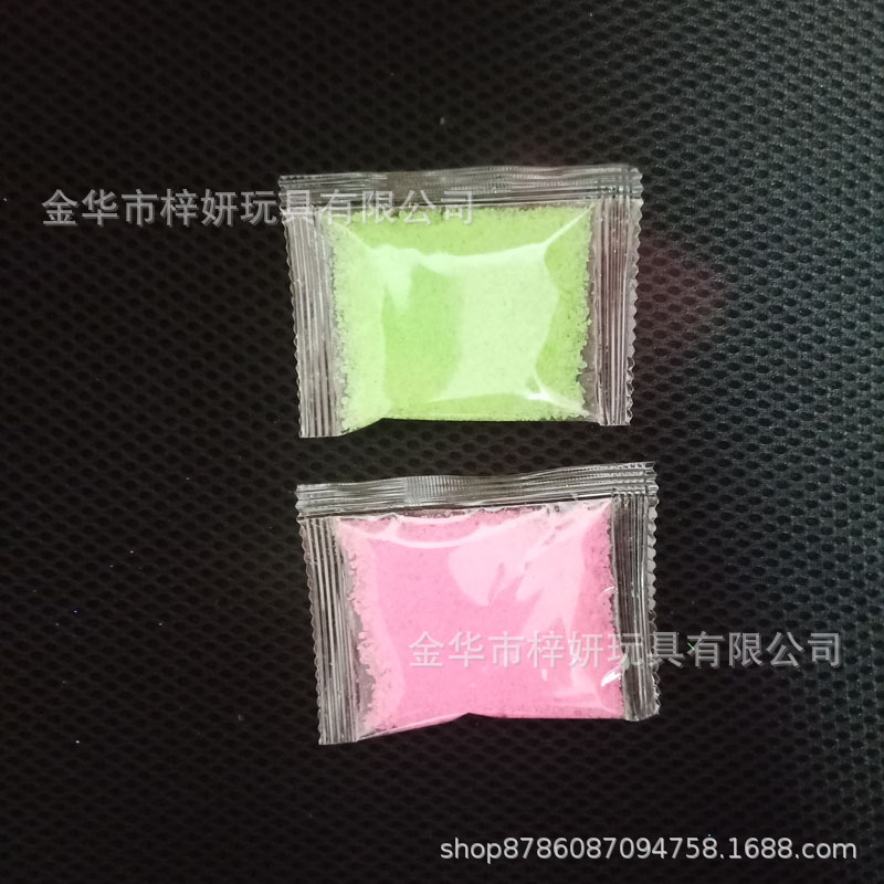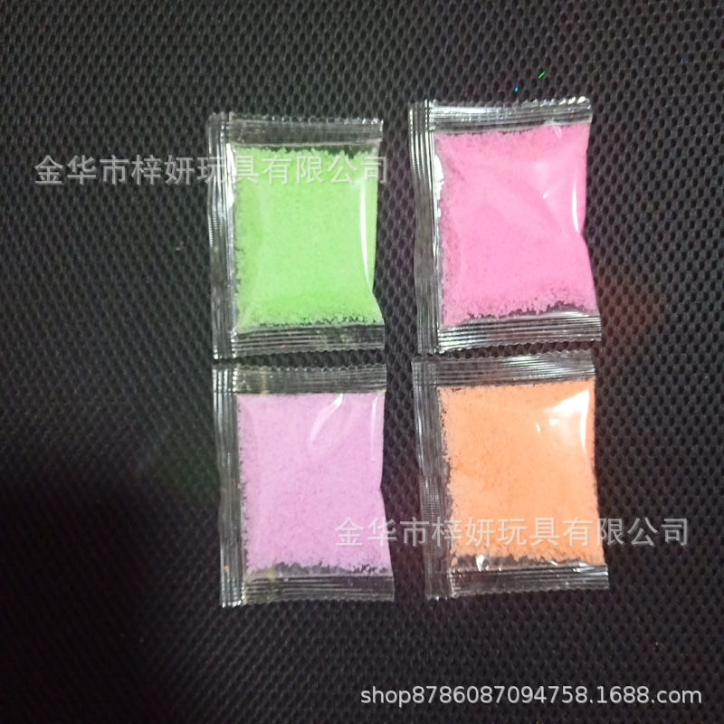 本款为10克袋装弹力球粉,不含硼砂,每色200袋起订,常规8个色,可按客户颜色定做,