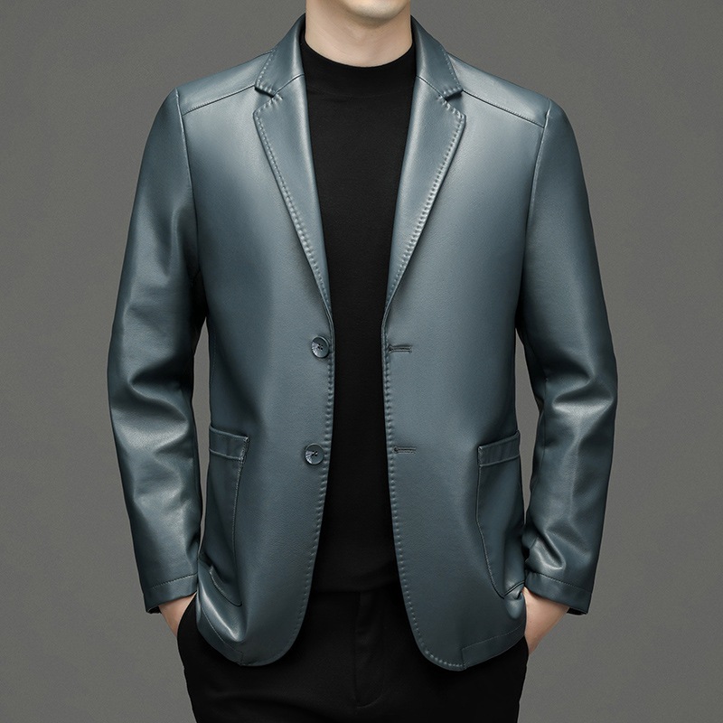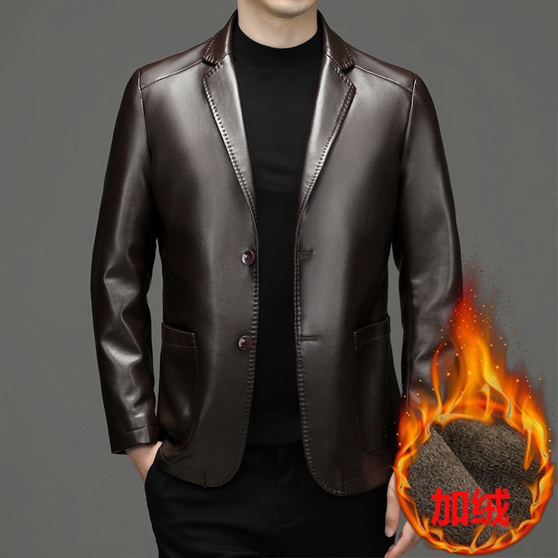 2024, осенне-зимний новый стиль, мужской повседневный костюм из козьей кожи среднего возраста, верхняя куртка для папы с воротником