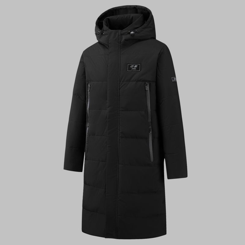 Новая модель пуховика 2025 года для мужчин, рабочая одежда для пар, утолщенное модное пальто средней длины с логотипом, однотонное с принтом