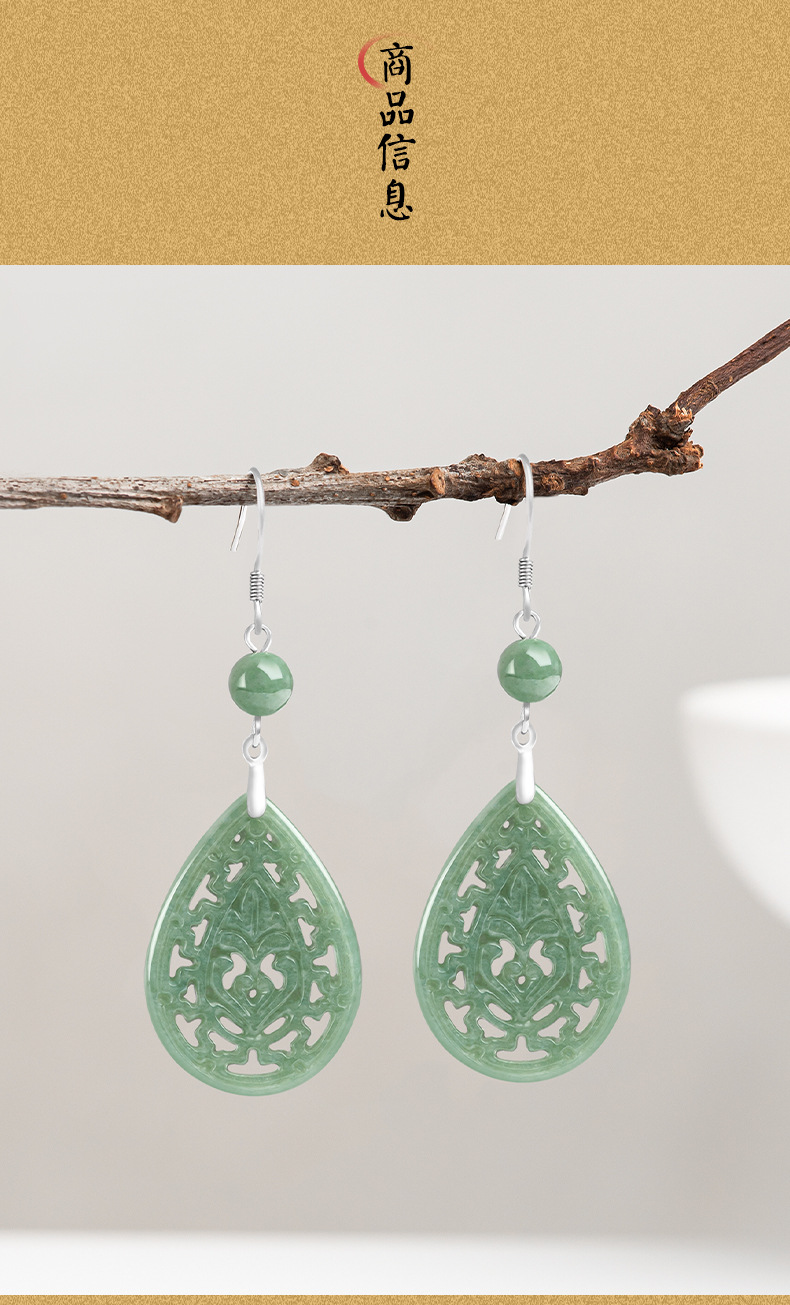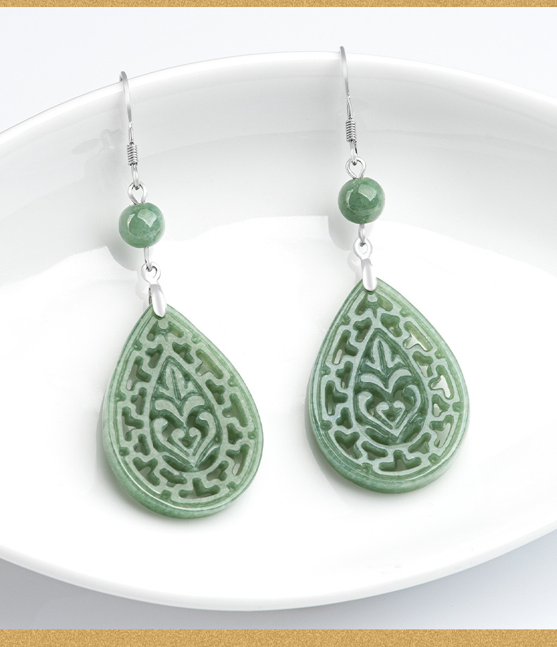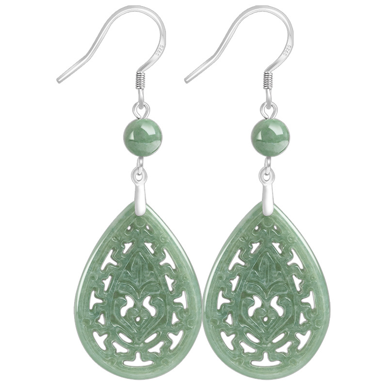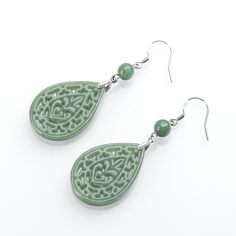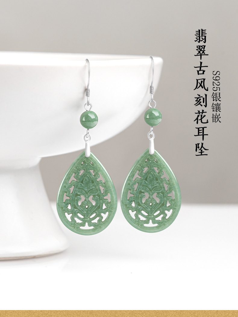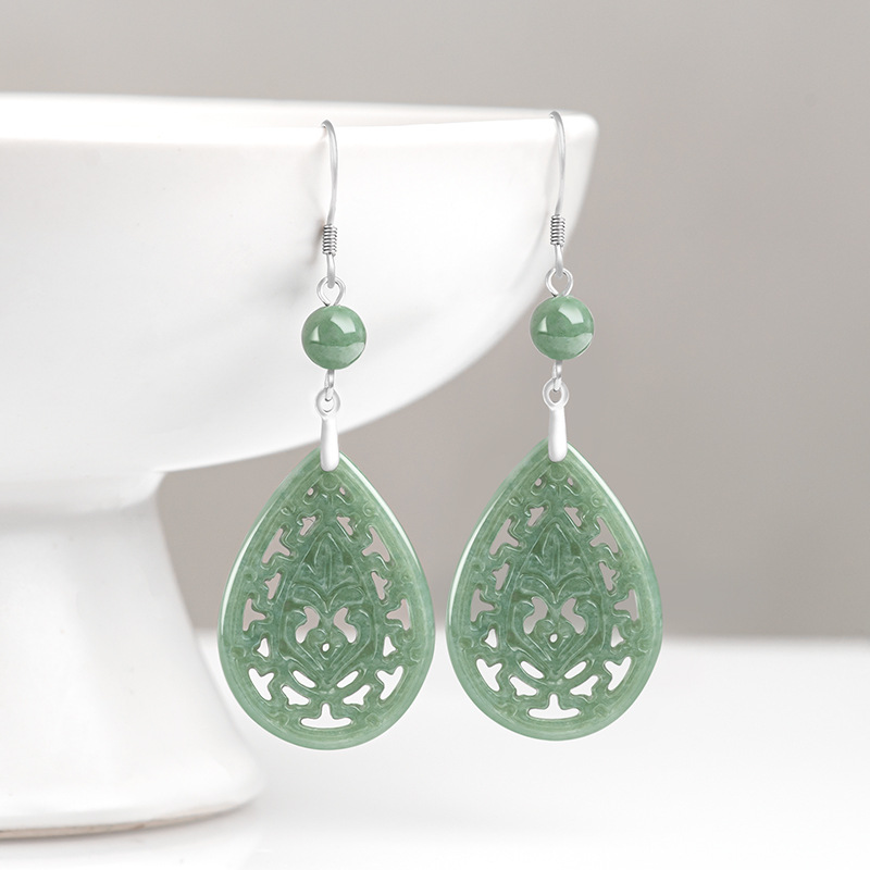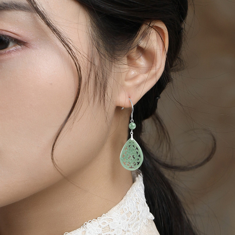 Натуральные товары Изумруд Ретро выдолбленные резные серьги бобы S925 инкрустированный нефритовым камнем серебро Национальные женские серьги