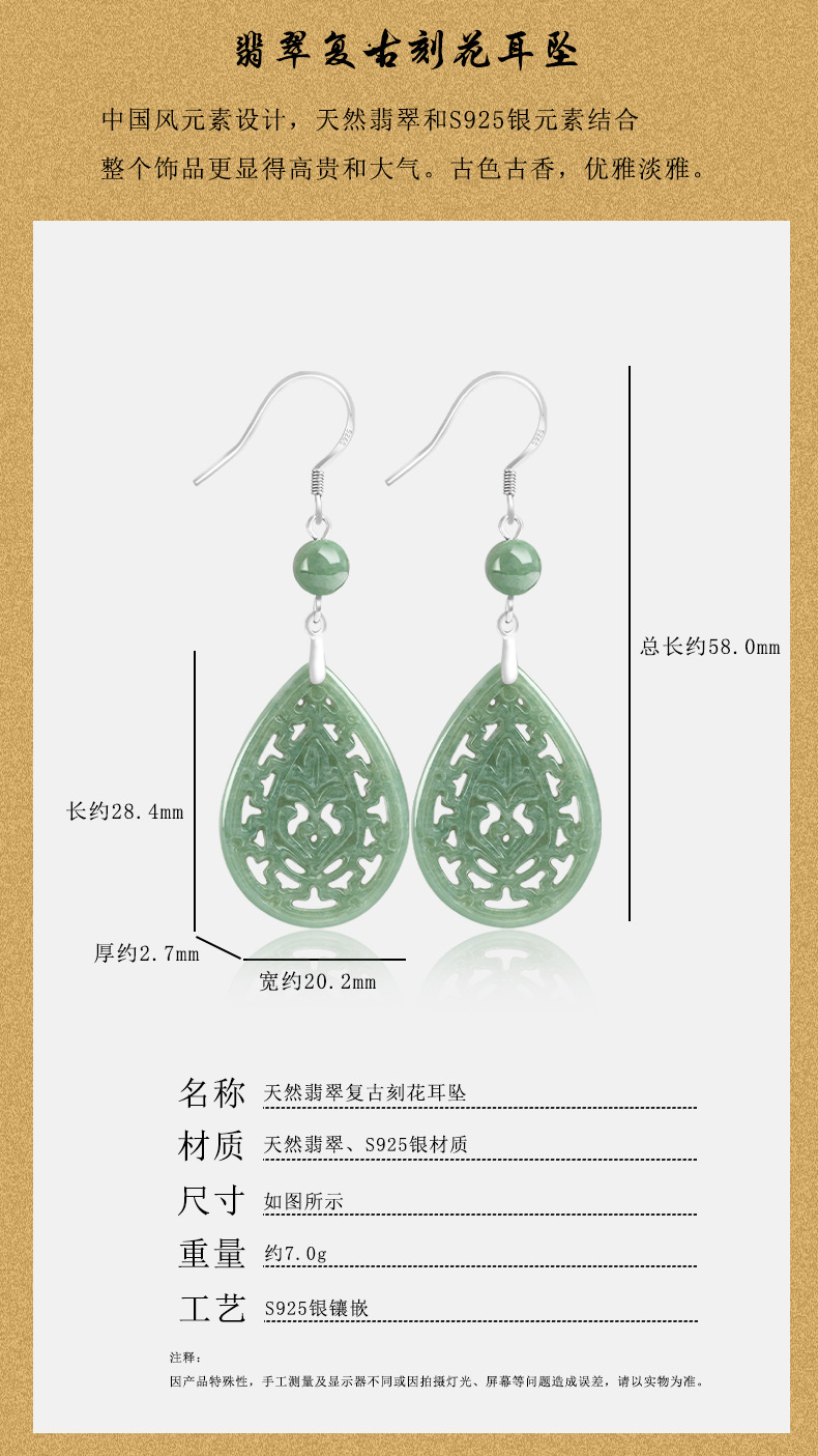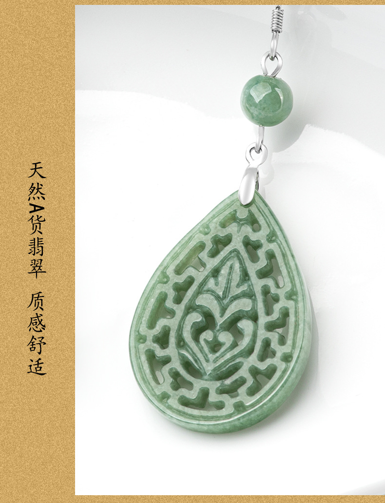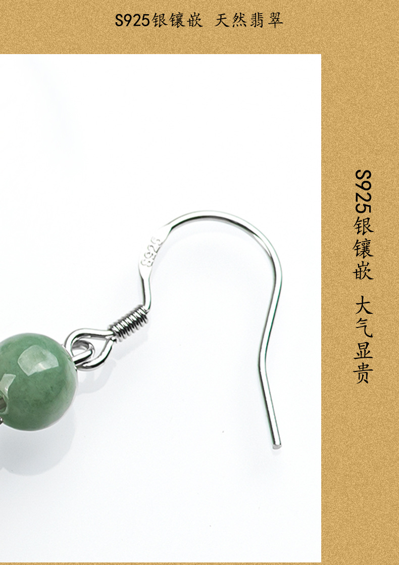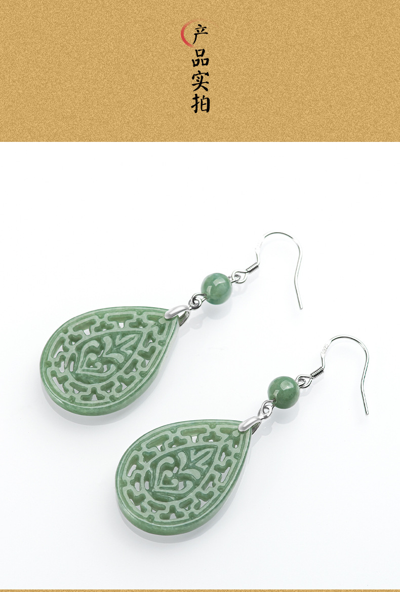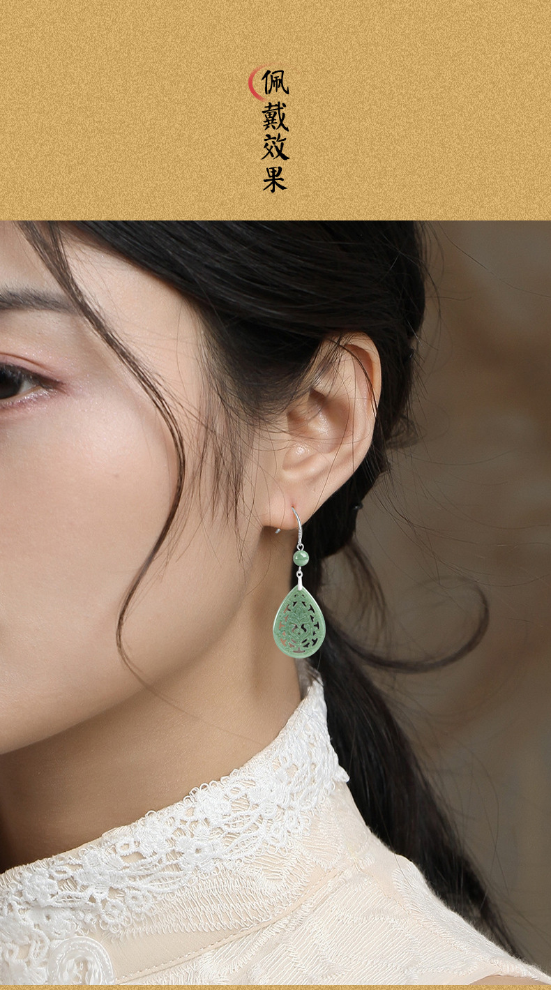 Натуральные товары Изумруд Ретро выдолбленные резные серьги бобы S925 инкрустированный нефритовым камнем серебро Национальные женские серьги