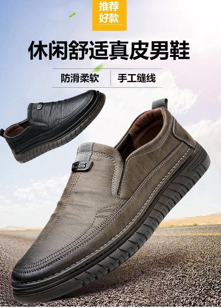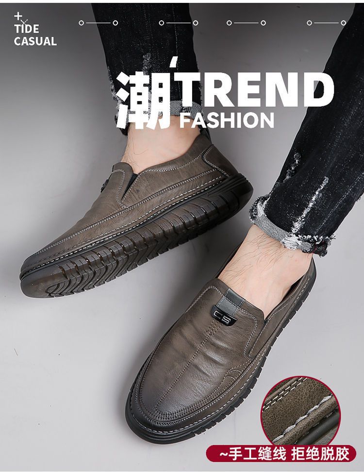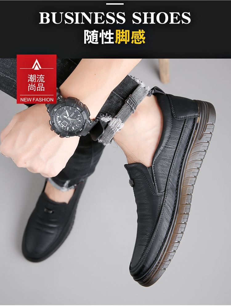 Мужские туфли с противоскользящей подошвой, новая осенняя модель, повседневные туфли без шнурков для офиса, стильные универсальные кожаные туфли, мужские туфли с мягкой резиновой подошвой.