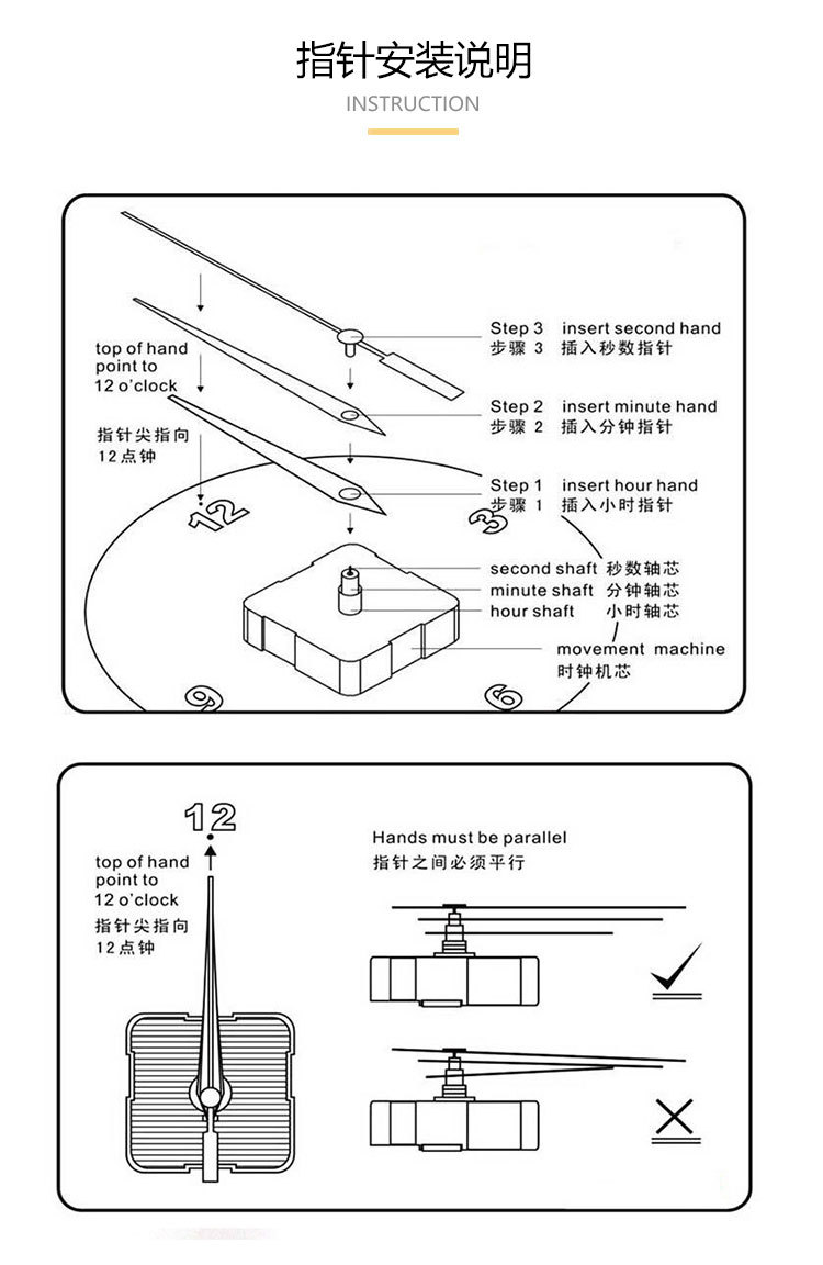 Заводская поставка оптом Хрустальная фарфоровая живопись настенные часы метр коробка Аксессуары для часов Часы игла часы набор игл 1043