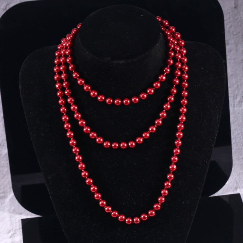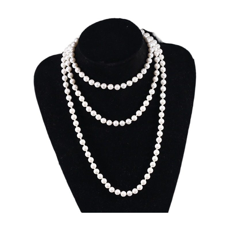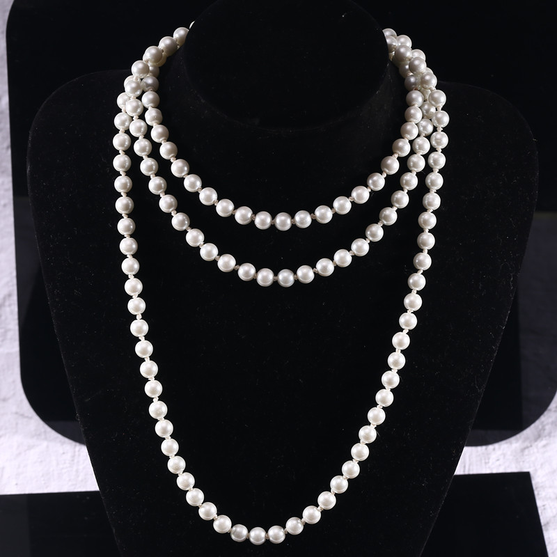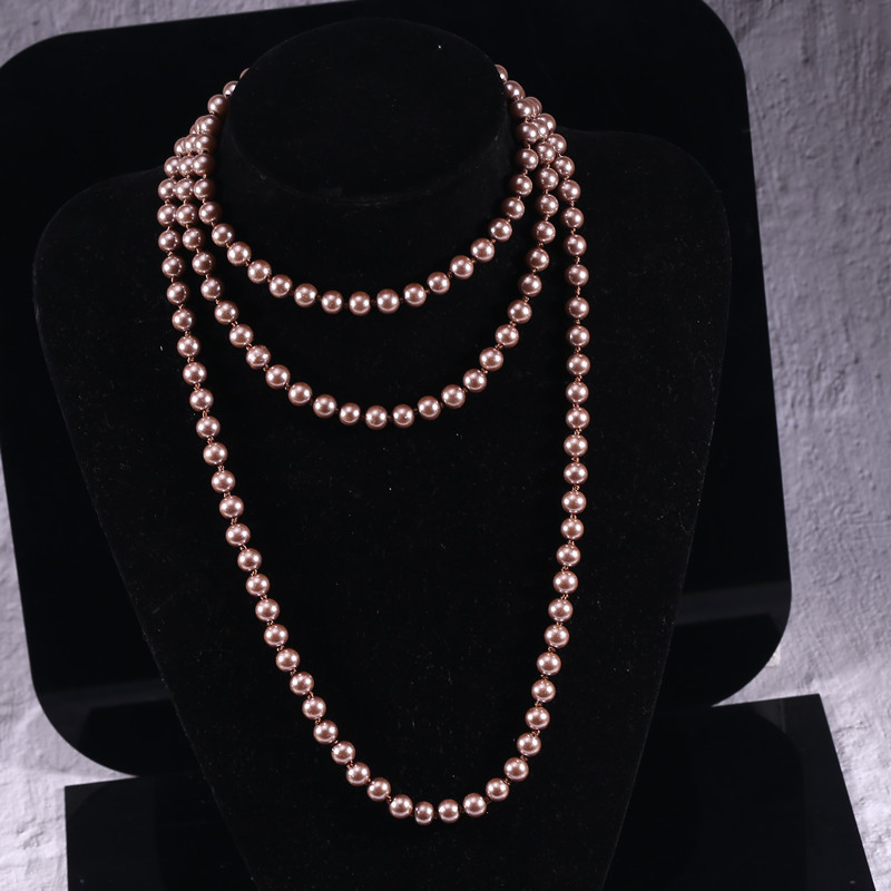 跨境欧美仿珍珠颈链1米5长款多层珍珠毛衣链旗袍配饰项链圆珠链女