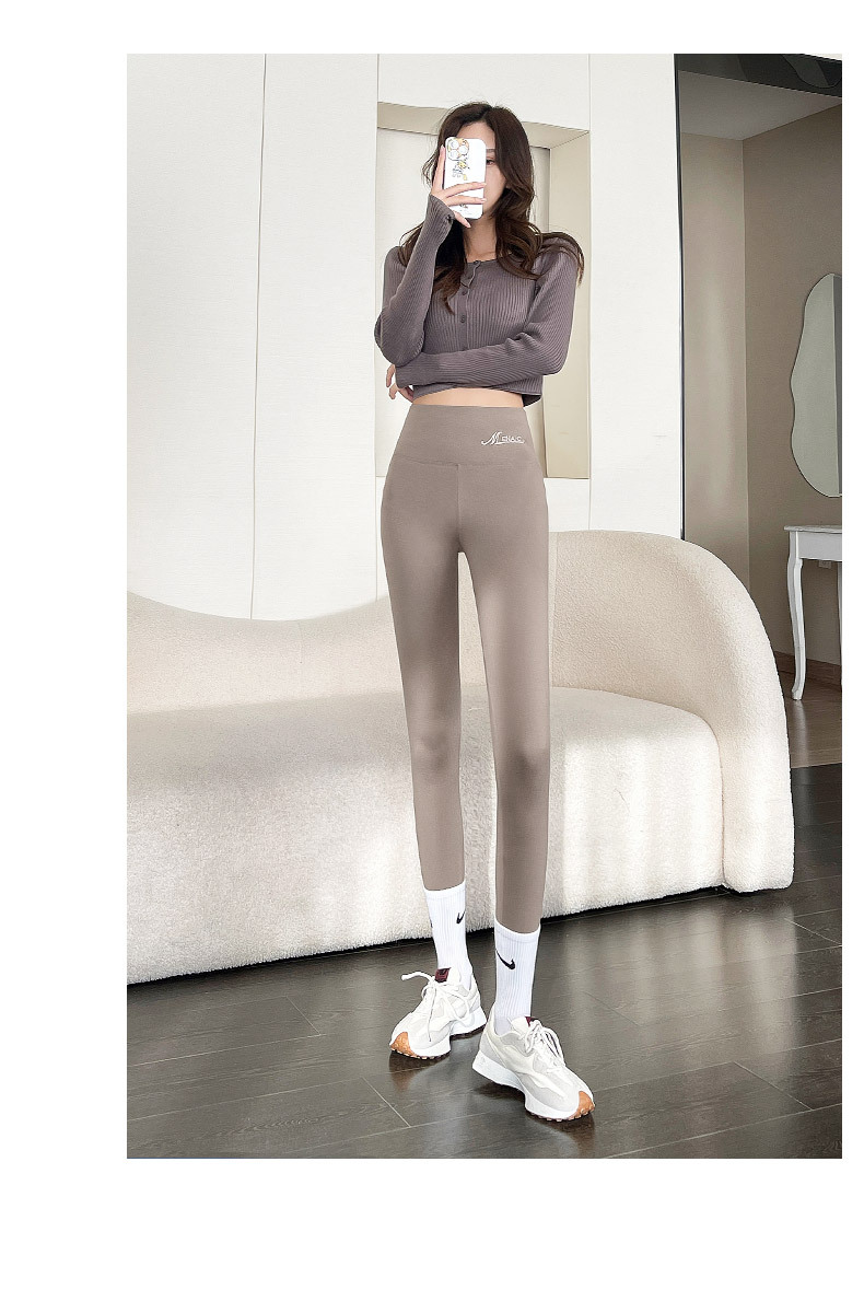 Оптовая продажа, Yiwu, бархатные катионные женские осенне-зимние толстые с флисовой подкладкой и вышивкой слова, теплые леггинсы с высокой талией