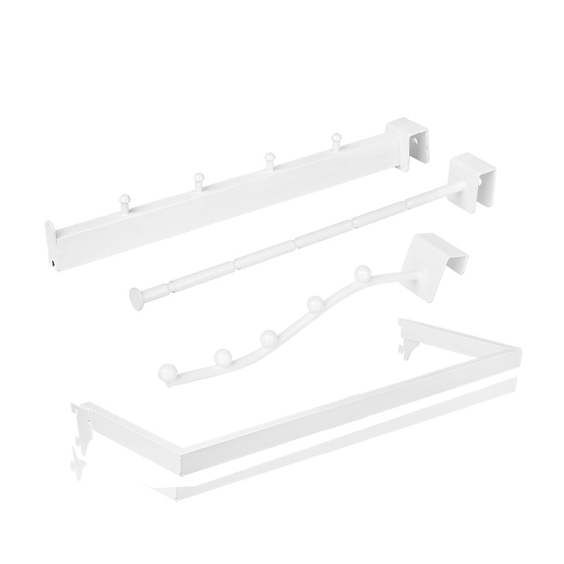Белая одежда 56 (53*26 см); Белый 66 полюс для одежды (63*26 см); Белый 75 полюс для одежды (72*26 см); Белый 86 полюс для одежды (83*26 см); Белый 92 шест для одежды (89*26 см); Белая вешалка 106 (103*26 см); Белый 122 шест для одежды (119*26 см); Белый 126 полюс для одежды (123*26 см); Белая 56 перекладина (53 см); Белая перекладина 66 (63 см); Белая перекладина 75 (72 см); Белая перекладина 92 (89 см); Белая перекладина 106 (103 см); Белая перекладина 122 (119 см); Белая перекладина 126 (123 см); Белый изогнутый подвесной стержень с 7 бусинками должен сочетаться с перекладиной; Белая плоская трубка с 5 гвоздями должна быть согласована с поперечной балкой; Белые брюки стойку комбинации должны быть согласованы с перекладины; Белая шляпа стойки 2 карты 2,5 отверстия Расстояние между отверстиями доска