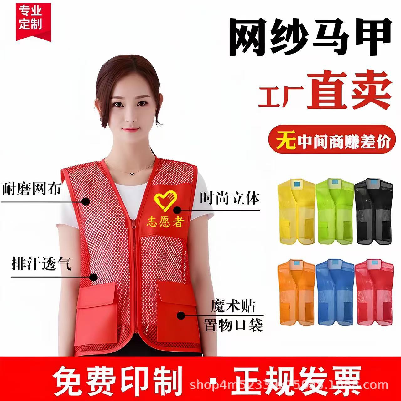 Сетчатая жилетка для волонтеров с напечатанным логотипом, летняя красная сетчатая жилетка, сетчатая рабочая одежда для волонтеров, рекламная жилетка-футболка