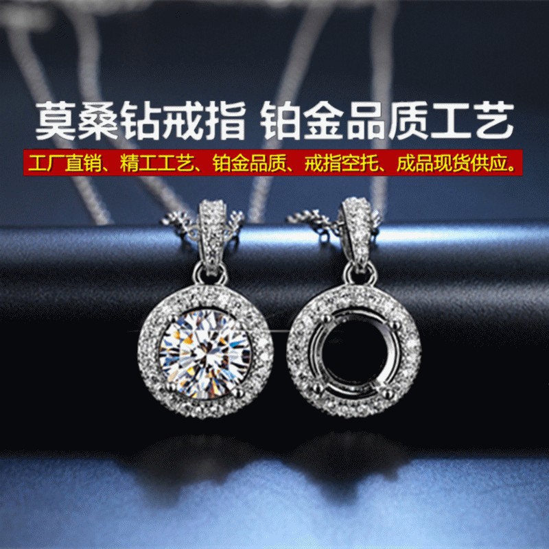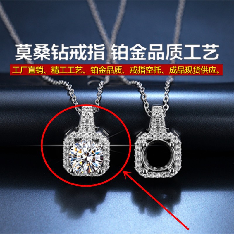 Европейские и американские креативные новые аксессуары квадратная сумка круглая сумка из стерлингового серебра 1 карат Mosane бриллиантовое ожерелье простая женская подвеска пустой держатель