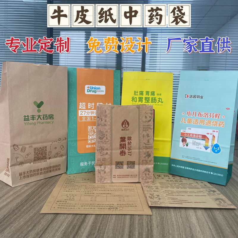 Индивидуальные одноразовые утолщенные пакеты из крафт-бумаги для традиционной китайской медицины, пакеты для западной медицины, пакеты для упаковки лекарственных препаратов в аптеках, упаковочные пакеты с печатью логотипа