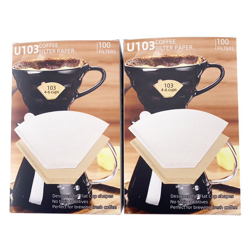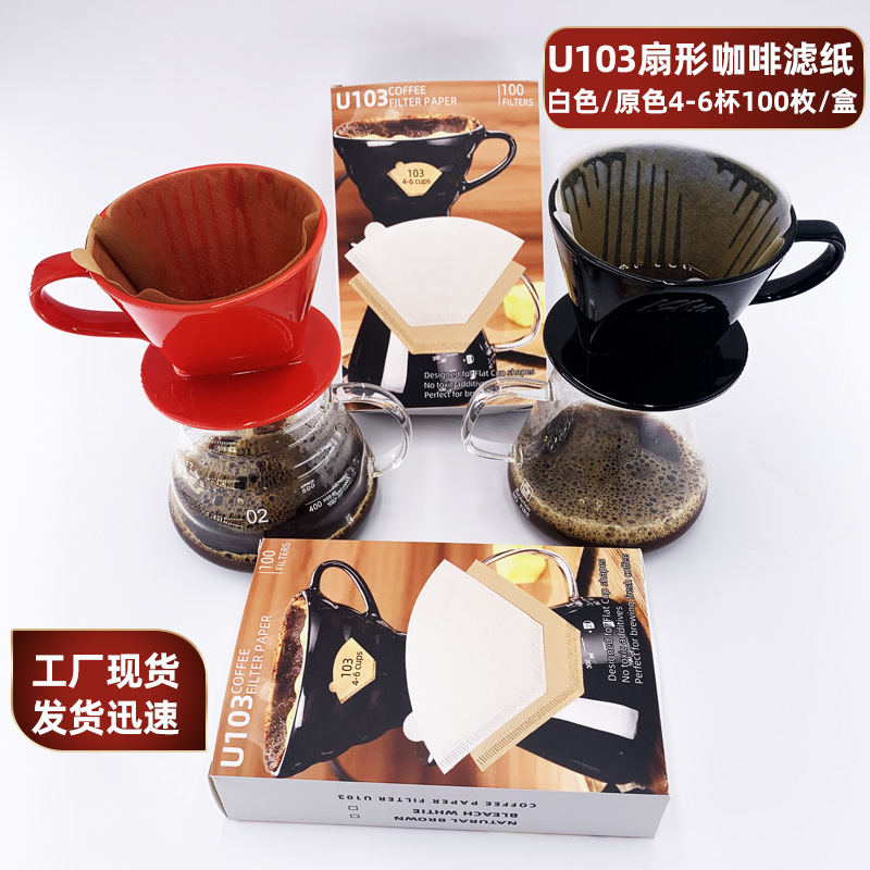 Домашний американский U-образный 103 чистая древесная масса кофемашина фильтровальная бумага цветная коробка 4-6 чашек 100 штук веерообразной кофейной фильтровальной бумаги