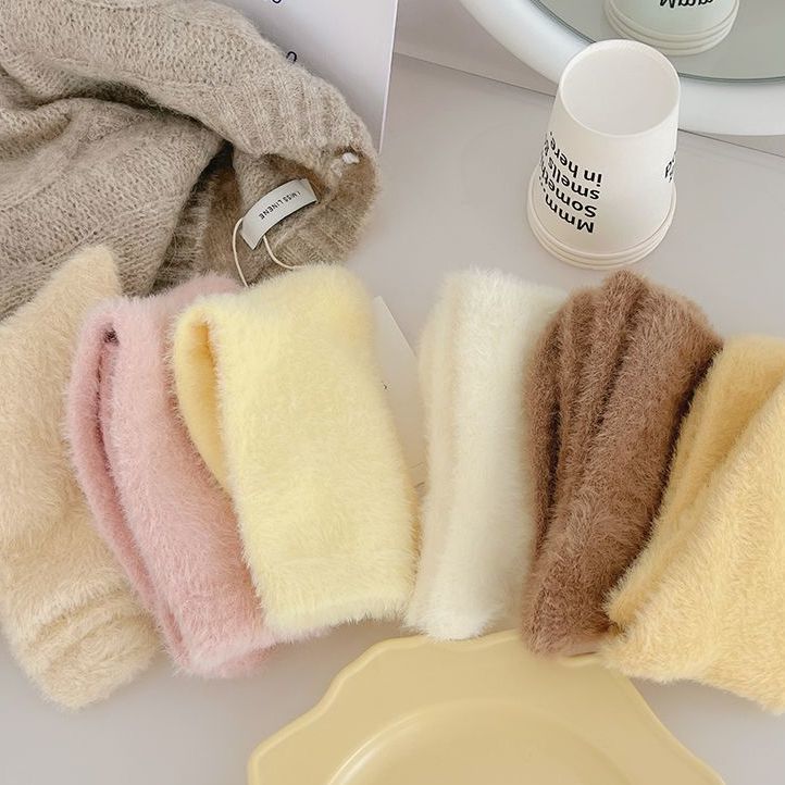 Однотонные норковые бархатные носки, женские осенне-зимние утолщенные теплые носки средней длины на флисовой подкладке, модные японские плюшевые Чулки со сборками
