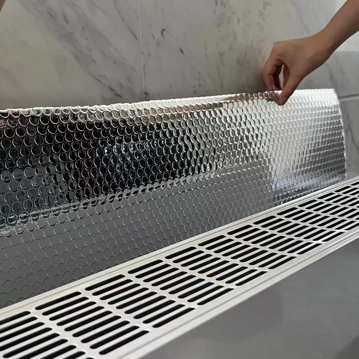 Изготовленный на заказ двусторонний изоляционный мат из алюминиевой фольги с пузырьками воздуха, энергосберегающая отражающая пузырчатая пленка для радиаторов, модель для электронной коммерции, 60 см*5 м