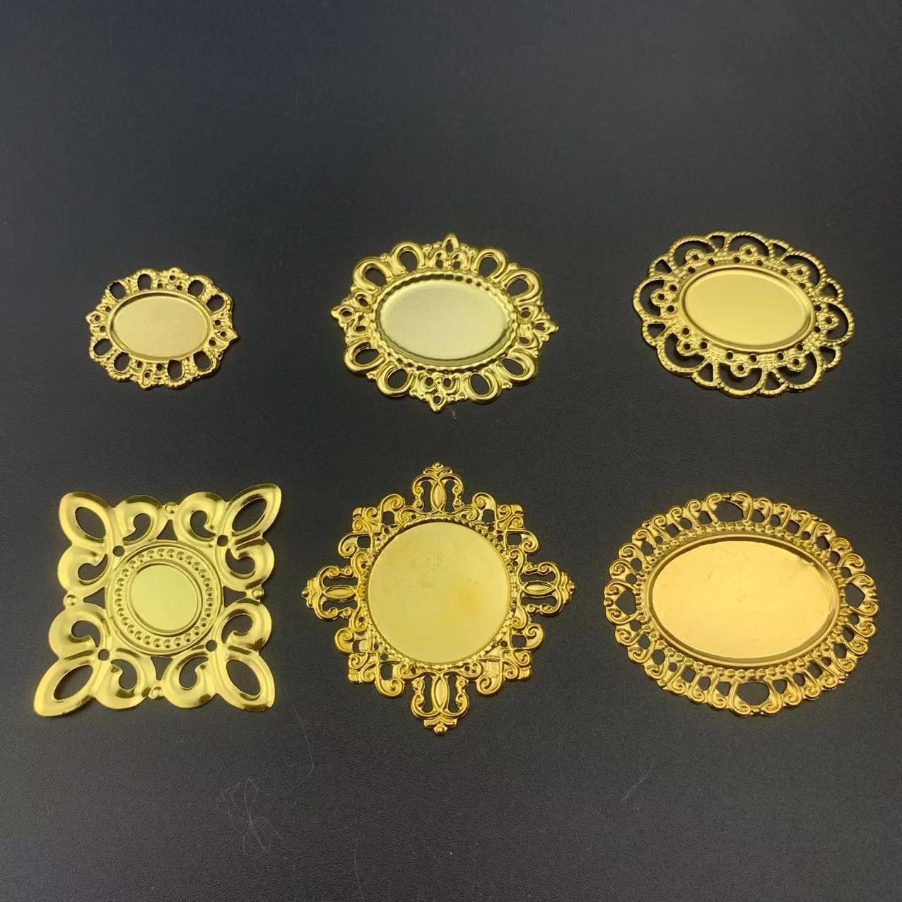 DIY ювелирные аксессуары 38*43 мм зеркальное основание металлическая пластина основание линзы Опора драгоценный камень сверлильный стол кружево Овальный Цветок