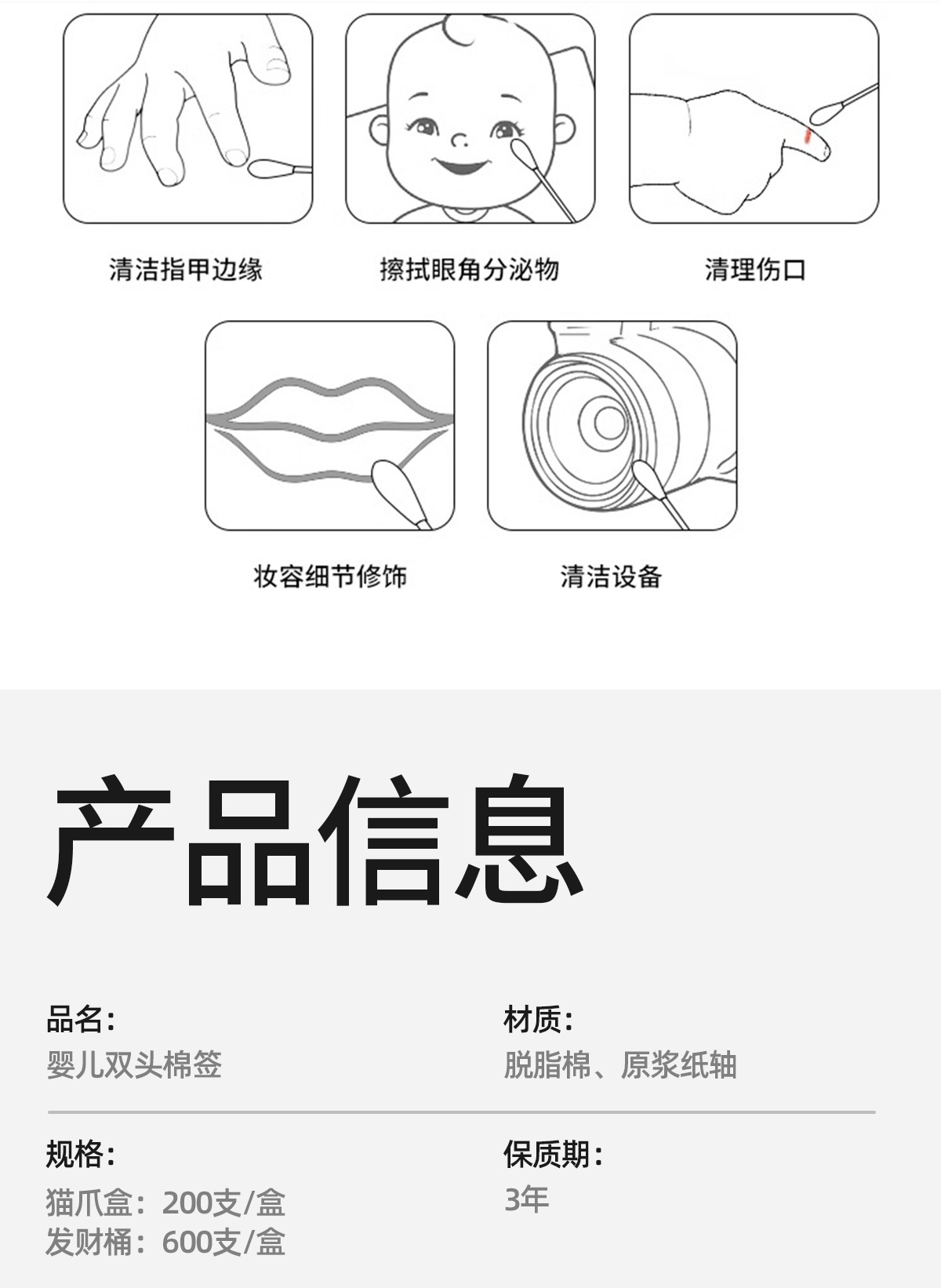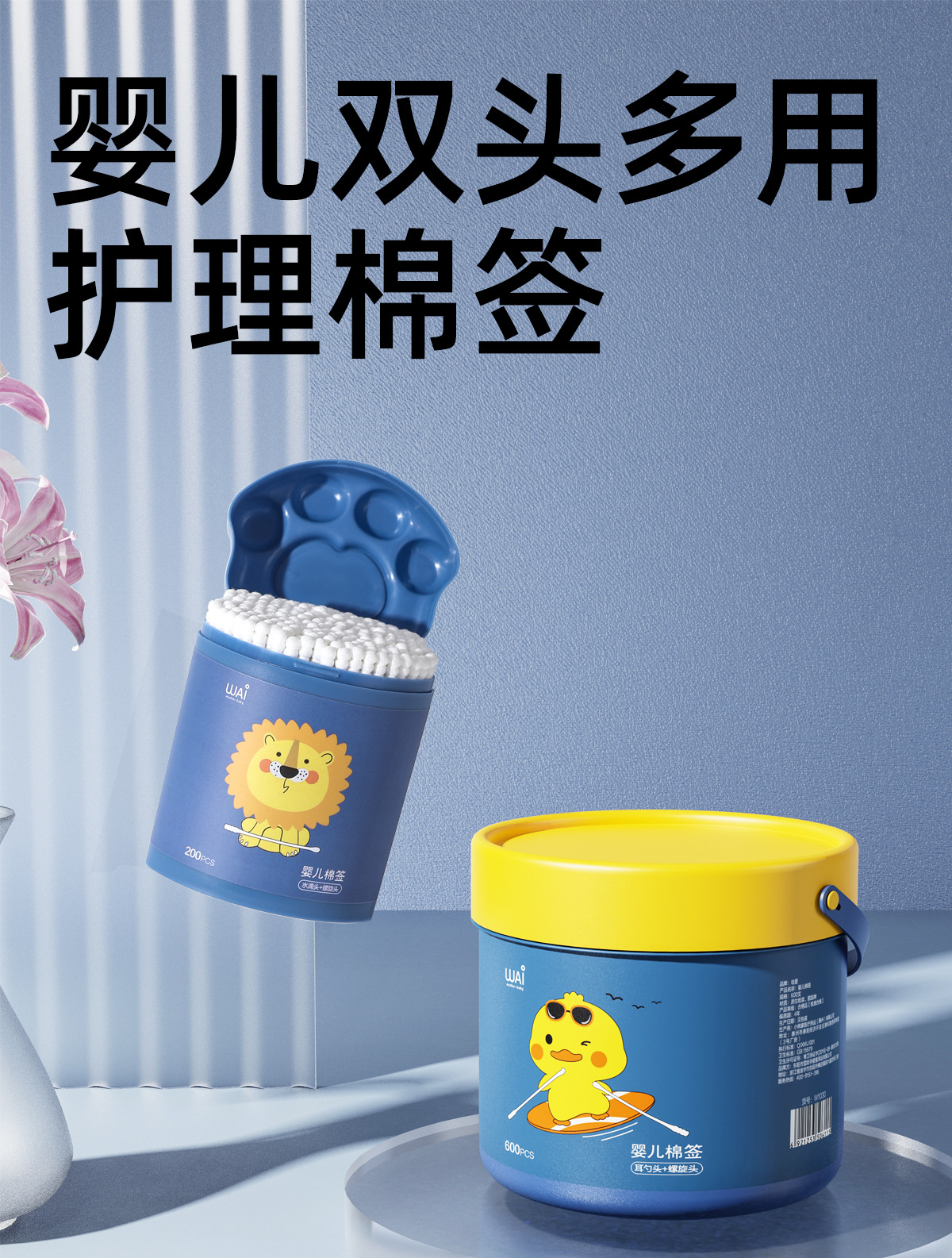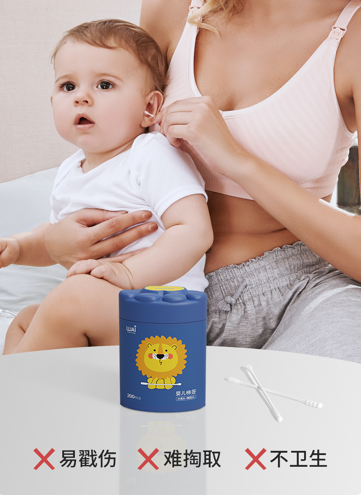 Детские ватные палочки, 200 штук в упаковке, детские маленькие ватные палочки, двусторонние ультратонкие одноразовые ватные палочки для малышей, ватные палочки с маленькой головкой